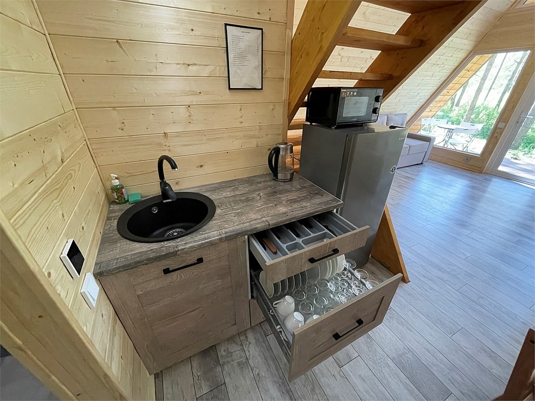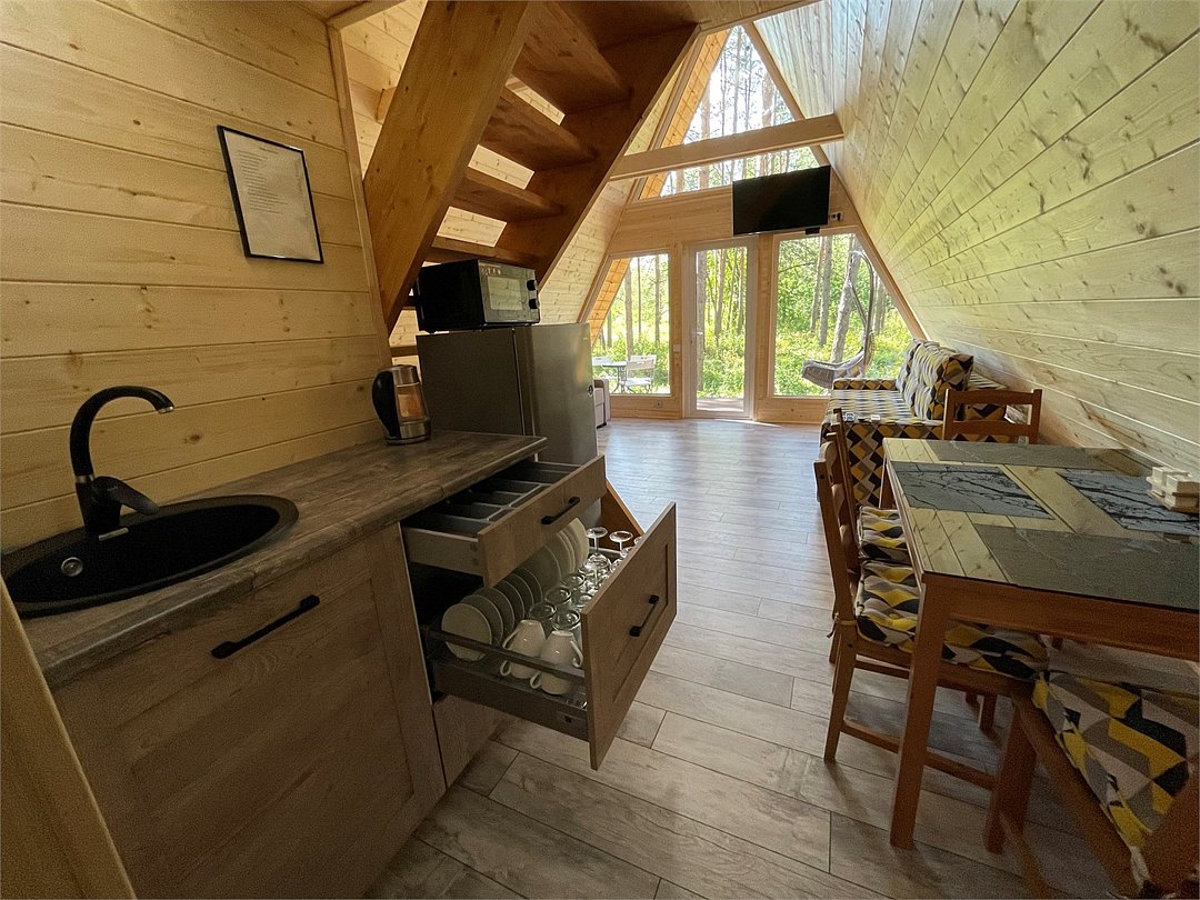 В доме есть все необходимое для комфортабельного проживания, чтобы вы могли расслабиться и посвятить время себе и своим «близким».В доме: гостиная, большой телевизор (Smart-TV), лофт, кондиционер, кухонная зона: холодильник, СВЧ-печь, комплект посуды на шесть персон, стол, стулья.