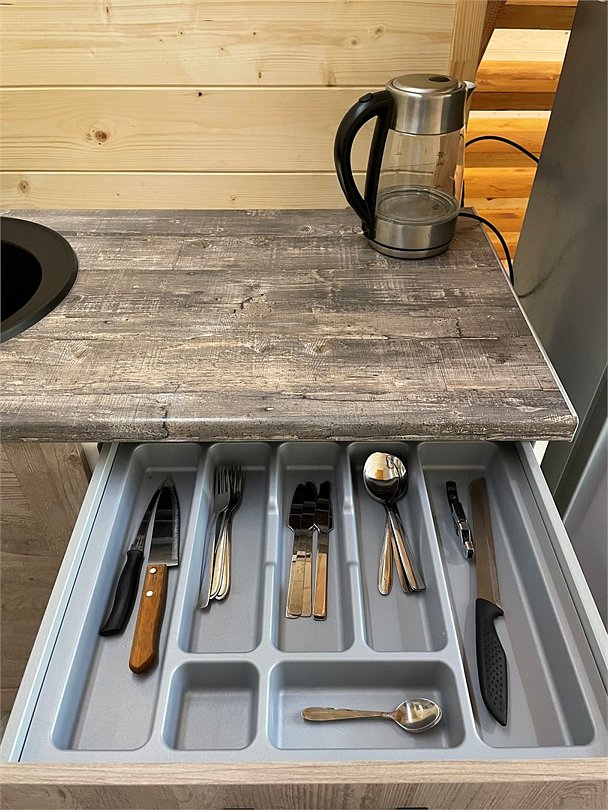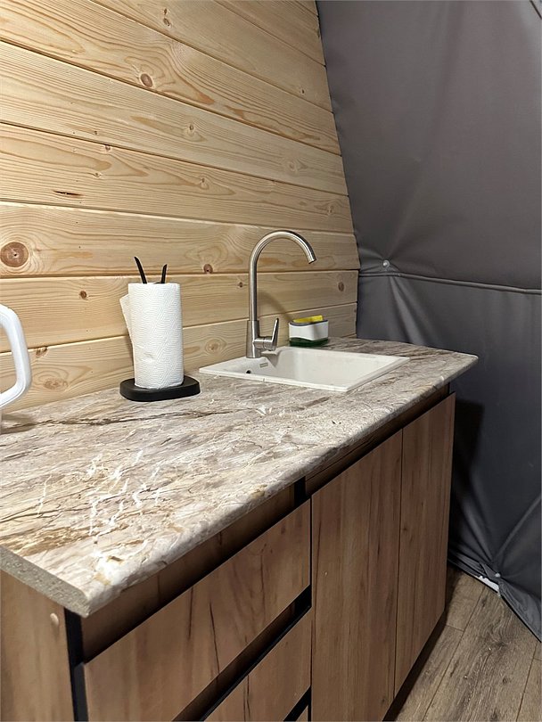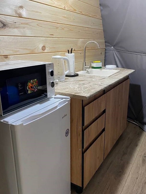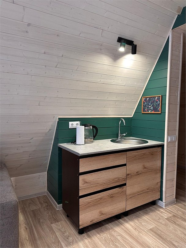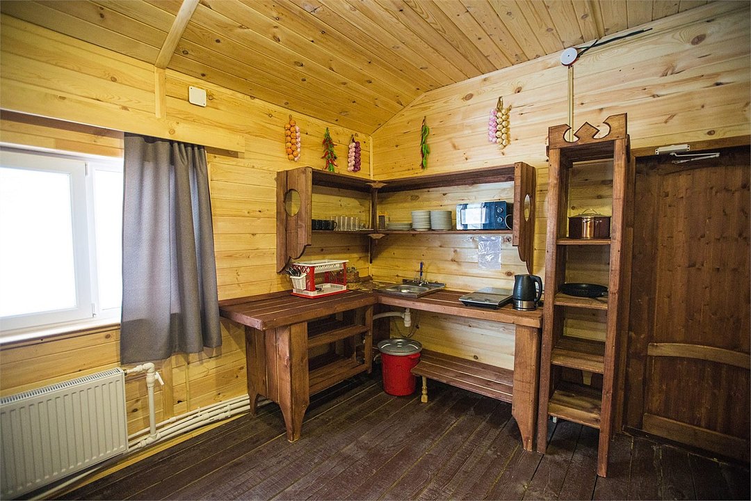 Красивый интерьер, качественная мебель, компактная полноценная кухня — идеально подойдет для семейного отдыха или отдыха с друзьями. Спа-зона: ароматная сауна прямо в доме — идеальна для вечернего расслабления. Сибирский банный чан под открытым небом – уютное погружение в горячую воду на свежем воздухе рядом с домом, особенно красиво вечером под звездами.
