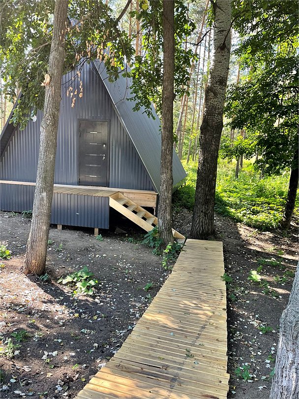 Дом А-Frame «Grand» №6 с сауной и чаном! Комфорт в сердце природы. Идеальный выбор для ценителей уединения и активного отдыха. К вашим услугам полностью огороженная территория, сибирский банный чан, расслабляющая ароматная сауна, просторный участок, а также мангальная зона для кулинарных удовольствий на свежем воздухе.
