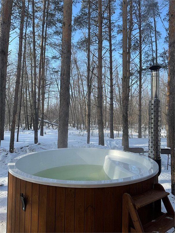 Ароматная сауна прямо в доме — идеальна для вечернего расслабления. Сибирский банный чан под открытым небом — уютное погружение в горячую воду на свежем воздухе рядом с домом, особенно красиво вечером под звездами.