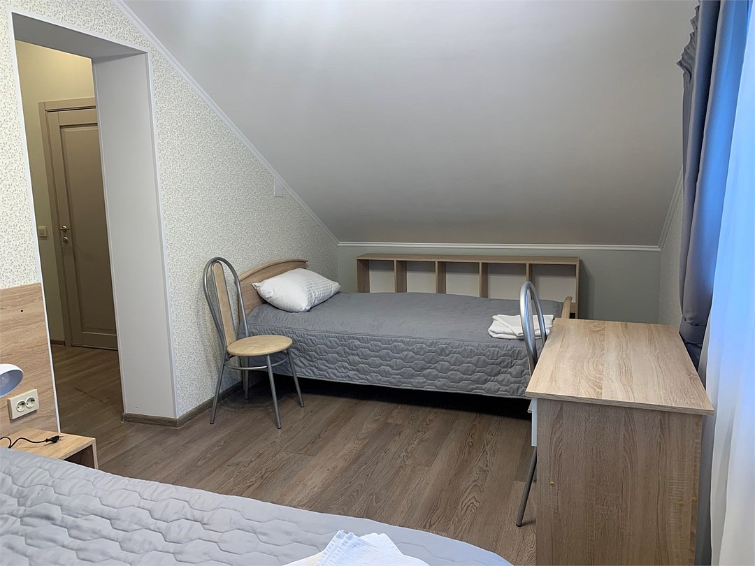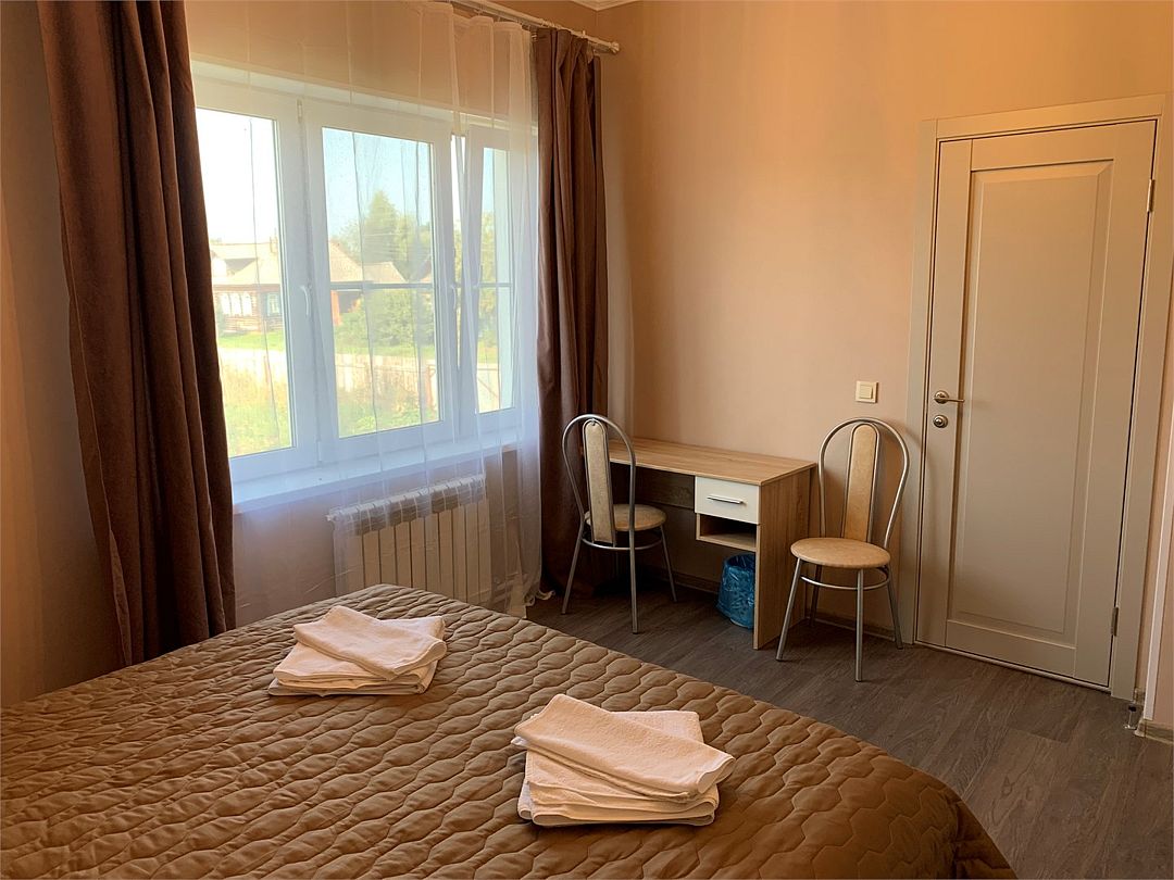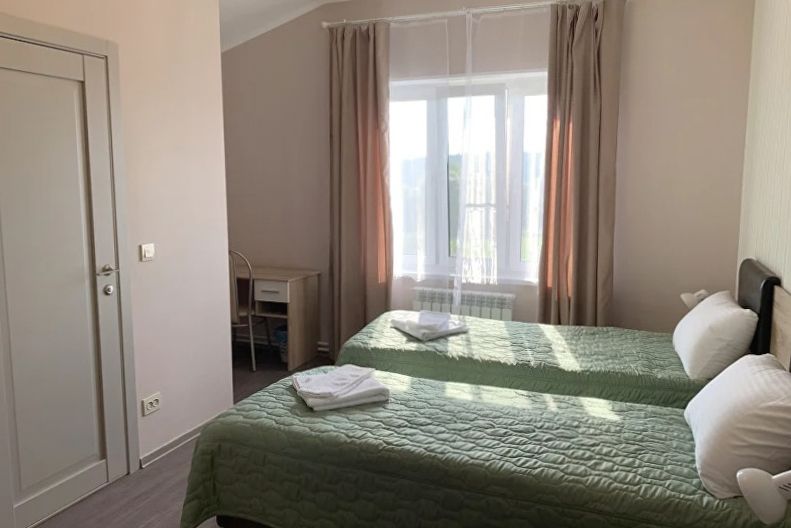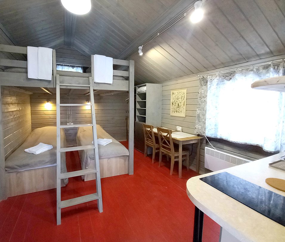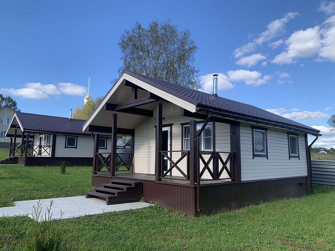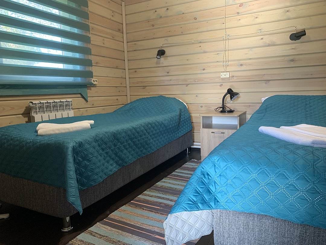 Комфортный двухкомнатный домик с санузлом и мини-кухней. Возможно совмещение односпальных кроватей в двуспальные.