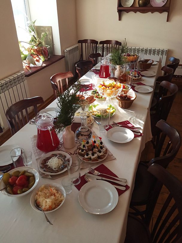 Путешествие с паройПоездка и проживание в ЗамытьеПобывали в гостевом доме вЗамытье 12.11-13.11. Дом - шикарный!! Дизайн- прекрасно продуманный, с великолепным вкусом, с использованием исторических реликвий, в традициях местного колорита.Все бытовые условия созданы на самом высоком уровне.Тепло, красиво, очень уютно.Есть кухня со всеми необходимыми принадлежностями, хорошие ванные комнаты в номерах, большая гостиная с телевизором, парковка, чудесная территория у реки. Интернет быстрый, обслуживание очень приятное, доброжелательное.Хозяйка гостевого дома- Елена-сама доброта.Вернемся в Замытье ешь не один раз!