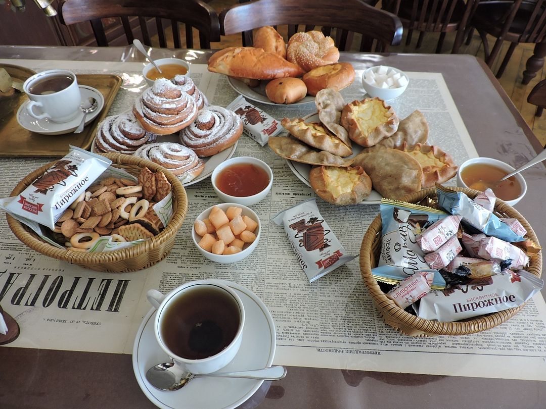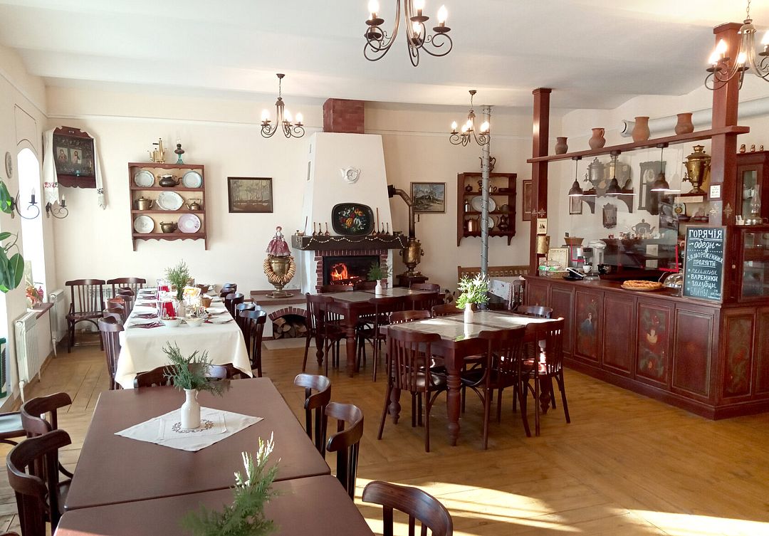 В «Первой народной чайной» каждый гость может окунуться в атмосферу старинного русского чаепития. Уютный интерьер в старинном стиле и живой огонь камина создают особую атмосферу.