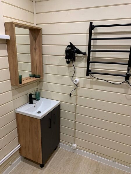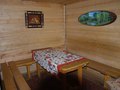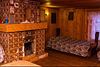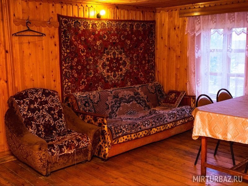 На территории туристического комплекса есть русская баня на дровах, уютные беседки и бассейн. Для проживания гостей предусмотрены современные коттеджи из натурального дерева. В каждом коттедже есть гостиная с камином и мягкой мебелью.