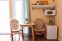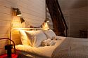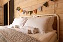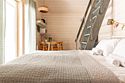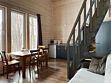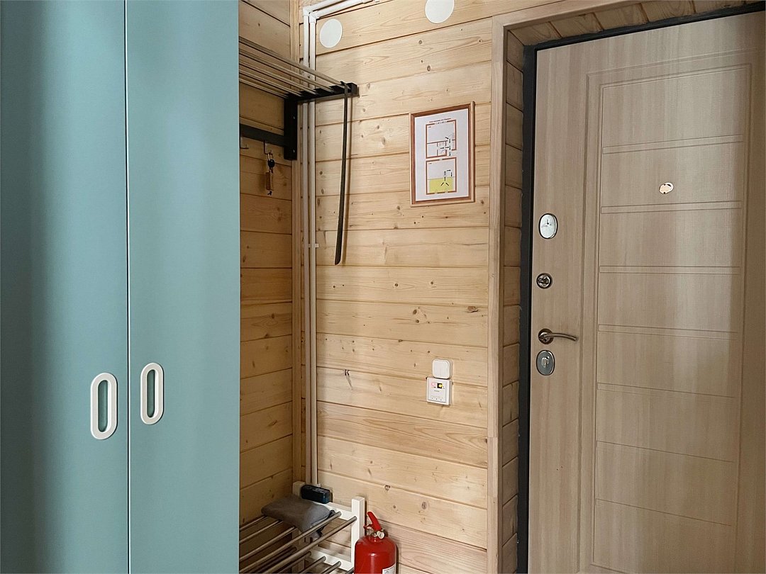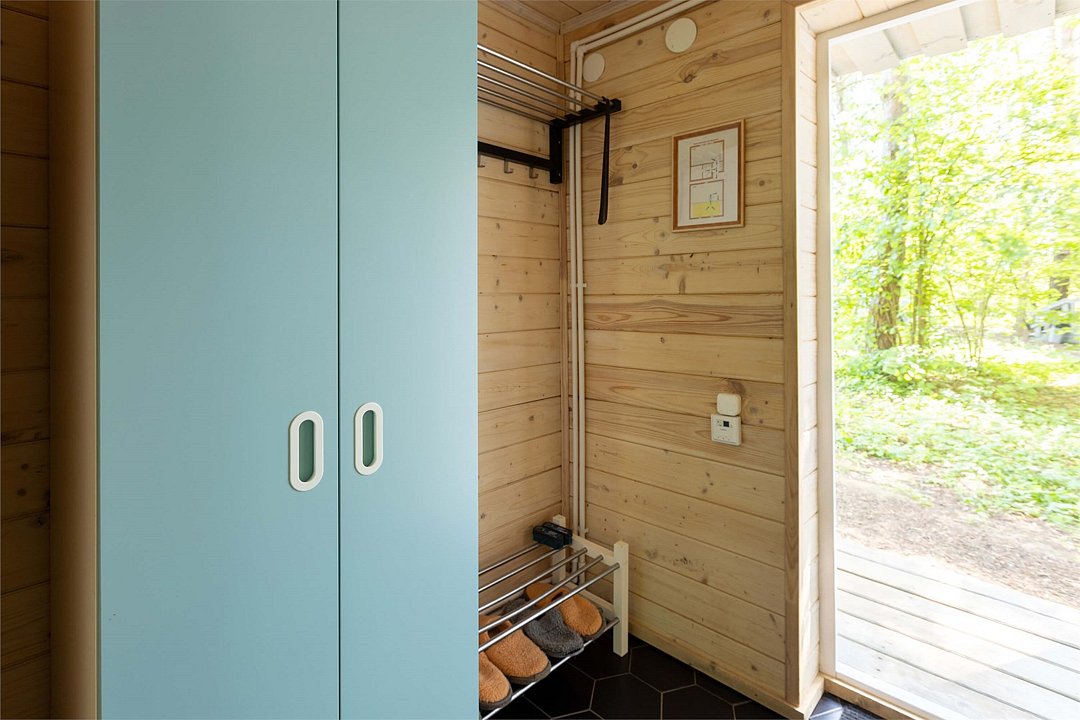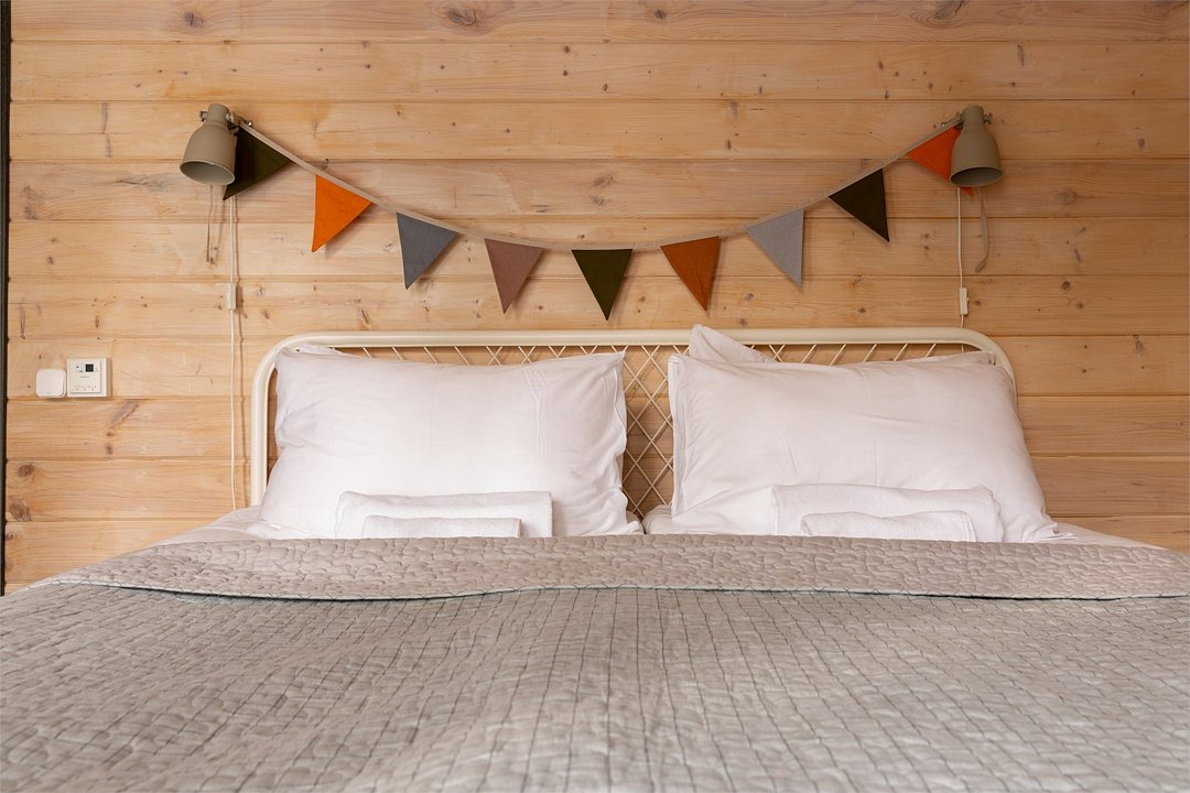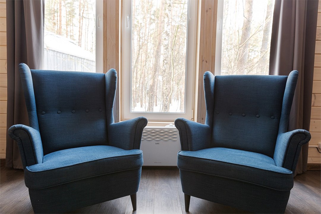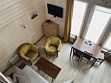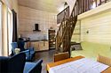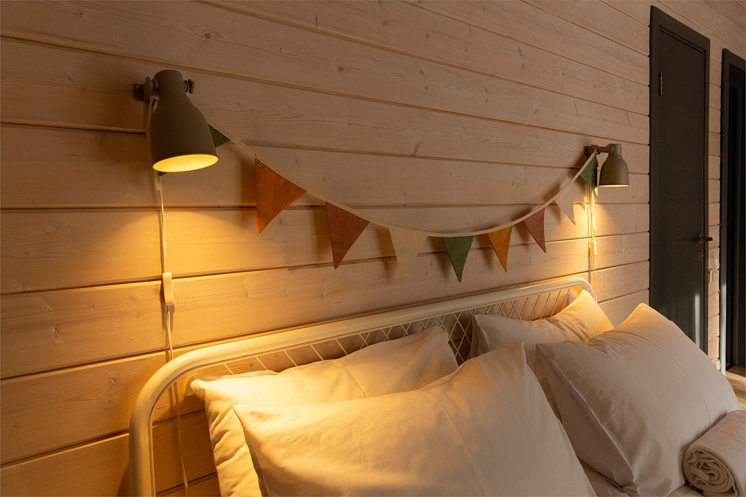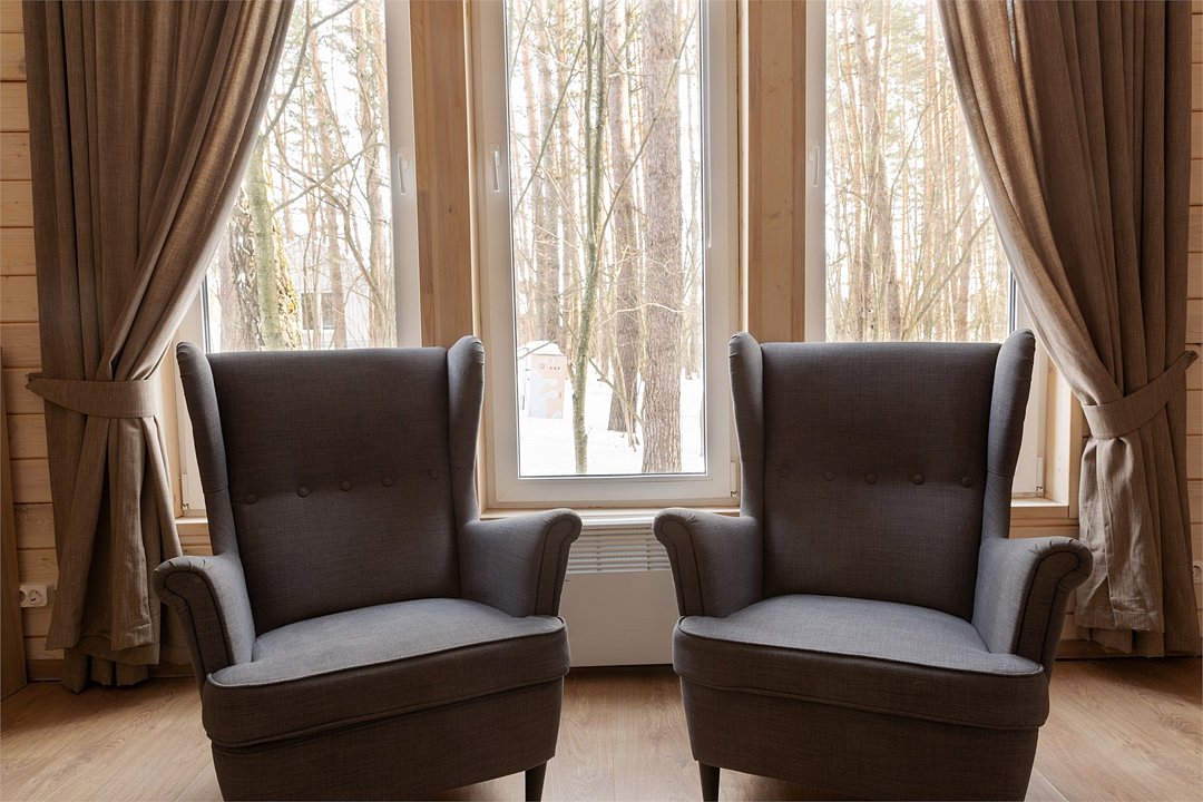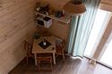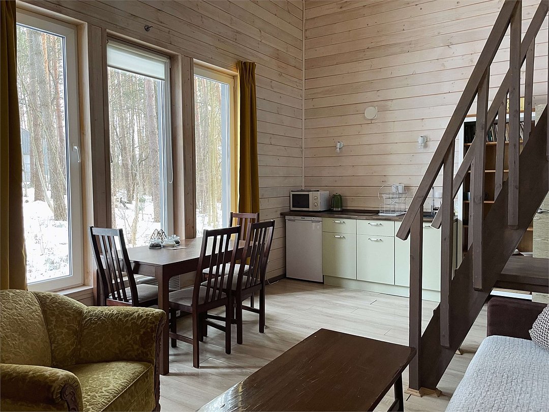 ■ одна из двух комнат в одном домике ■ кухонный уголок: мини-холодильник, микроволновка, электрический чайник, посуда и приборы ■ двуспальная кровать + спальное место на антресоли ■ ванная комната с душевой кабиной ■ до 4 гостей В одном домике находятся две комнаты с общей прихожей. Одна комната — дабл, другая — с антресолью. В комнате антресолью могут разместиться до 4 человек, она состоит из жилой комнаты и санузла. По всей комнате теплый пол, температуру можно регулировать. Двуспальная кровать с удобным матрасом расположена напротив больших окон в пол с видом на лес. Еще одно спальное место — на антресоли под крышей. ❗Обратите внимание, что лестница, которая ведет на антресоль, довольно крутая и подойдет не всем. Кухонный уголок оснащен мини-холодильником, микроволновкой, электрическим чайником и набором чайной посуды. Есть обеденный стол и четыре стула. Ванная комната с туалетом, душевой кабиной, теплым полом. В ванной есть фен, по два полотенца для каждого гостя, жидкое мыло и гель для душа. Около каждого домика есть площадка с мангалом и столом для пикника (мангал общий, на обе комнаты). ❗У этой комнаты смежная стена с другой комнатой в домике. В деревянных домах слышимость отличается от привычной городской, и это может быть некомфортно для людей с чутким сном. Пожалуйста, будьте внимательны к другим гостям, соблюдайте тихий час после 22:00. Если важна уединенность, лучше выбрать отдельный дом (Брусника, Клюква, Черника, Морошка). Время заезда и выезда: ▸ check-in с 15:00 ▸ check-out до 12:00Услуги и удобства