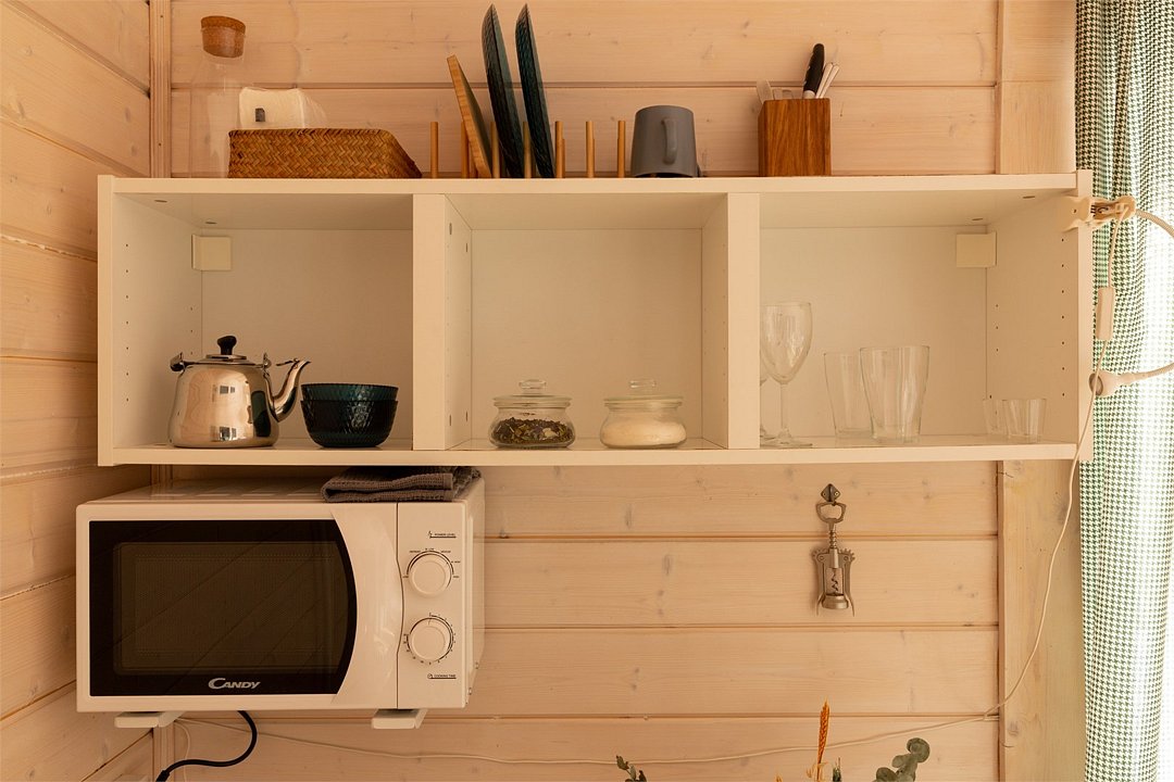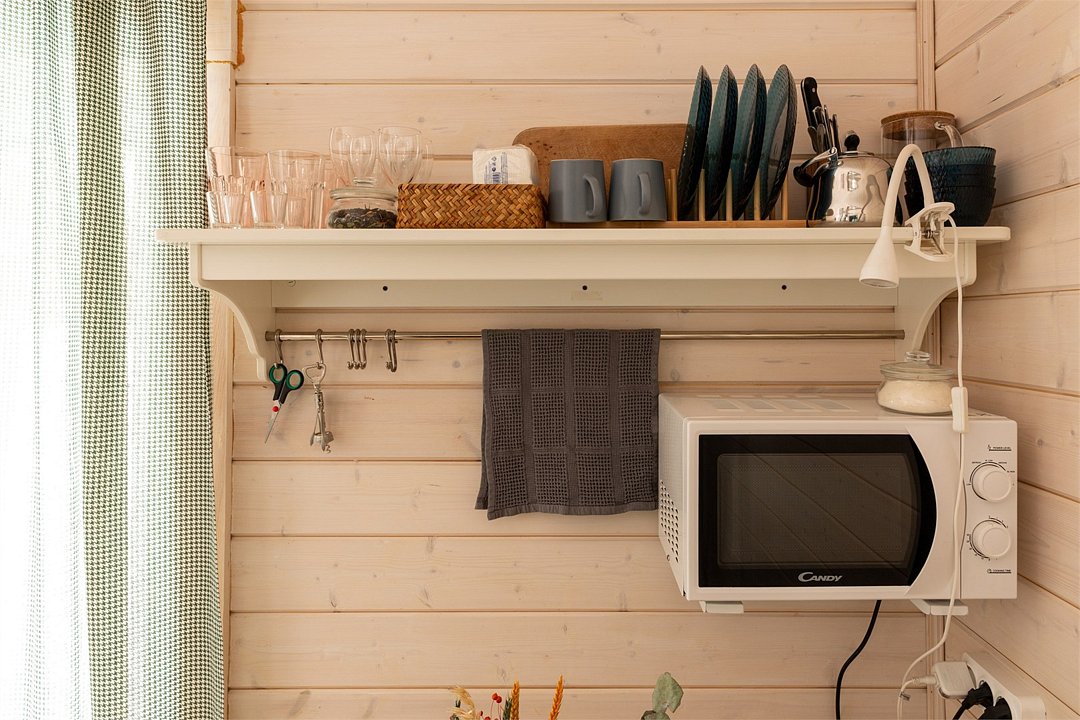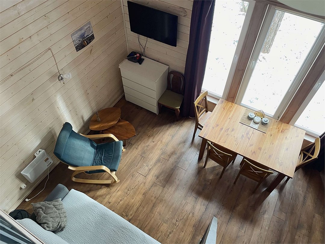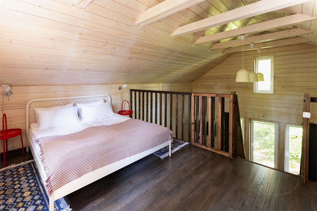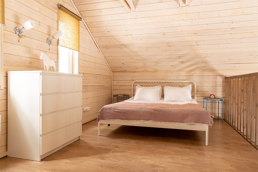 Wi-Fi, фен, микроволновая печь, ванная комната, душевая кабина, теплый пол, банные полотенца, двуспальная кровать, стулья, чайный набор, набор посуды, чайник, унитаз, раковина, стаканы, стол, мангал, панорамные окна, телевизор с плоским экраном, мини-холодильник, кухонный уголок, москитная сетка, мансардные окна, теплые полы, вид на лес, кровать-антресоль, можно с питомцамиВ номере