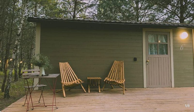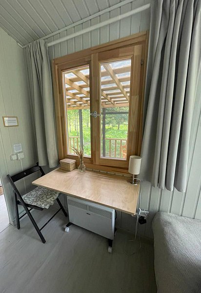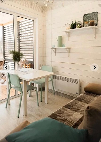 Домик «TinyDacha Можжевельник» расположен в сосновом лесу на территории дачного посёлка Зелёная тропа, где царит тишина и спокойствие. В вашем распоряжении будет кофемашина для приготовления ароматного кофе, кровать размера «king size», wi-fi, проектор для просмотра любимых сериалов и фильмов, а также мини-кухня со всем необходимым для приготовления пищи. В домике имеются туалет и душ, так что вам не придется беспокоиться о бытовых вопросах.