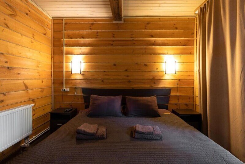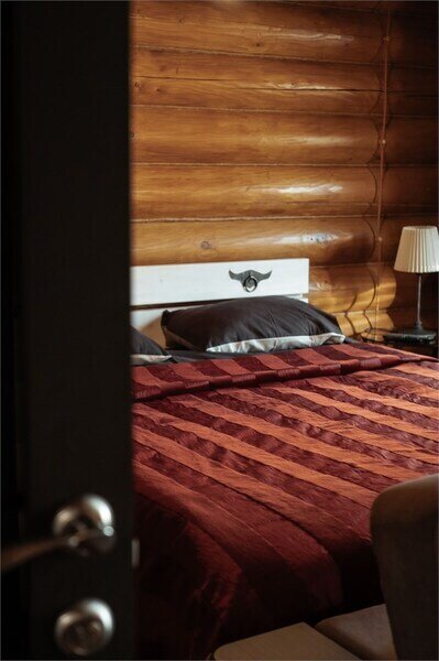 Этот дом стал одним из самых любимых для гостей. Преимущество этого коттеджа — наличие ольховой бани. Ольха обладает целебными свойствами. При постройке использовались современные технологии, благодаря которым в бане легко дышится. После банных процедур можно расположиться в уютной спальне и насладиться полноценным отдыхом. Этот коттедж также оснащен современной кухней и имеет свою мангальную зону.