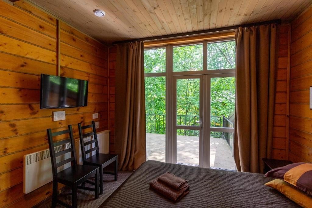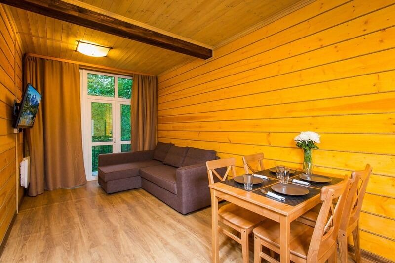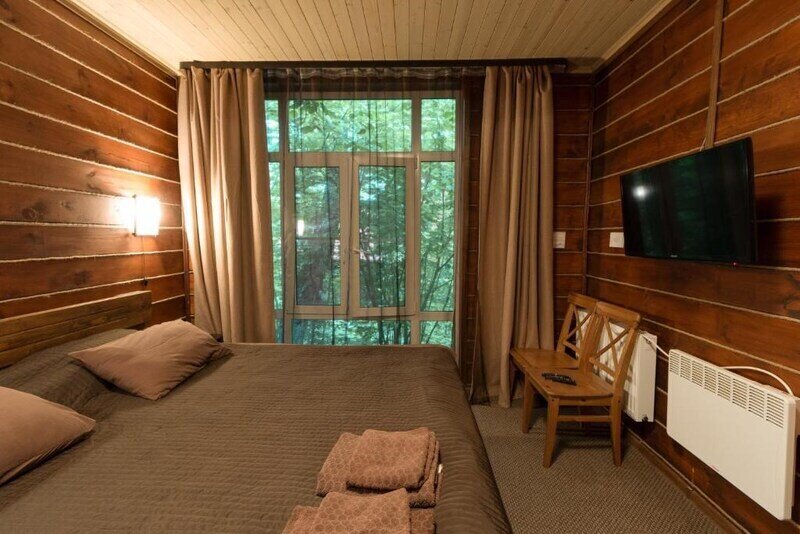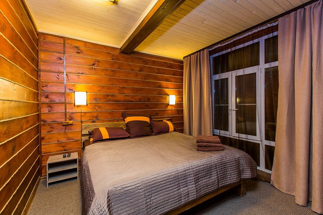 Просторный домик "Люкс" - для тех, кто не желает лишать себя комфорта во время отдыха. Две комнаты общей площадью 47 м 2, широкая двуспальная кровать (размер “King size”), два телевизора ( с плоским экраном и большим количеством каналов) и вся необходимая техника - вы будете чувствовать себя как дома! Вместимость до 5-ти человек. Спальня отделяется от гостиной при помощи коридора, а двери в обе комнаты закрываются. Благодаря этому отдыхающие смогут в полной степени насладиться отдыхом и уединением.