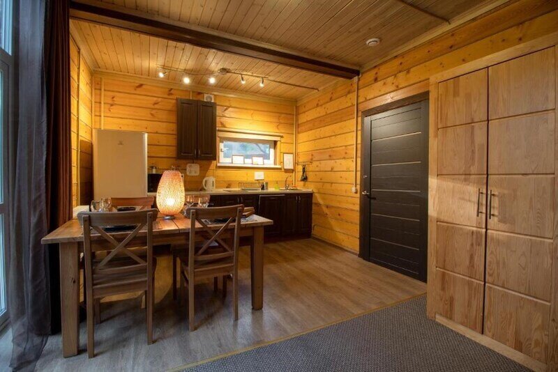 Кухня оснащена холодильником, микроволновой печью, столовыми приборами, кухонным столом. Вы можете готовить еду самостоятельно. Отдыхать здесь можно круглогодично. В зимнее время постоянно работает отопление.
