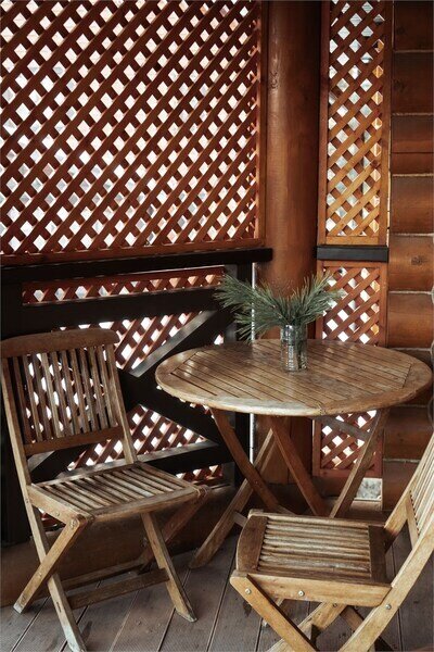 Коттедж имеет собственную встроенную террасу с уютной мебелью, которая гармонично дополняет загородный дом. С этой террасы словно рукой можно дотянуться до крон деревьев, почувствовать ласковое дуновение ветра и пьянящего свежего воздуха. Здесь приятно жить, комфортно отдыхать, получать удовольствие, наслаждаясь каждым днем отдыха.