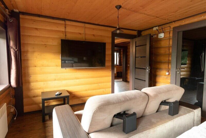 В коттедже имеется телевизор с плоским экраном и большим количеством каналов, быстрый вай фай, ванна с подсветкой.