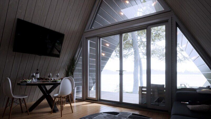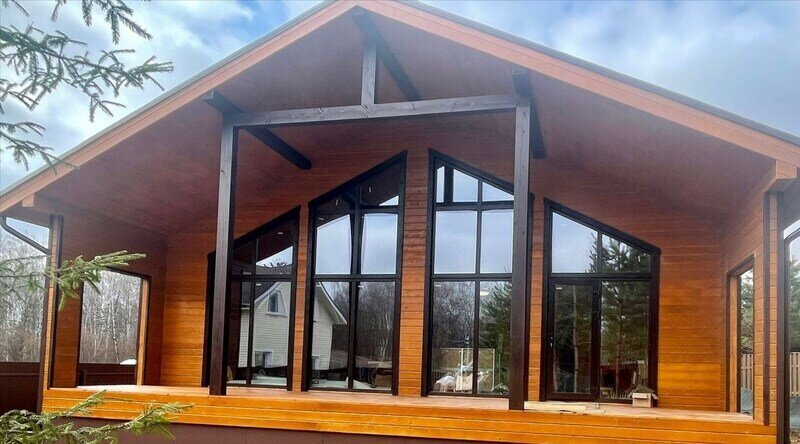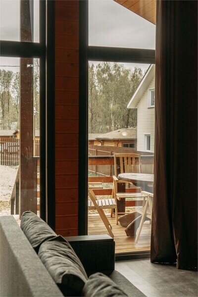 Дом 4-местный 2-комнатный с панорамными окнами и верандой
