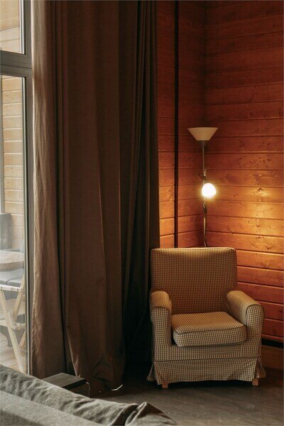 Домик категории «Полулюкс для двоих» способен принять на отдых до 3 человек. В спальне расположена большая кровать (размер “King size”) и удобное кресло - служит дополнительным спальным местом.