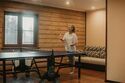 На втором этаже гостиная с игровой зоной для настольного тенниса и двуспальным диваном.