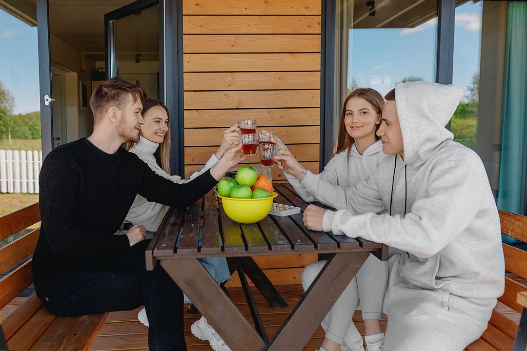 Для проживания гостей подготовлены уютные домики, оснащенные всем необходимым для комфортного отдыха. У домов A-Frame есть персональная баня на участке. Около каждого домика в личном пользовании есть мангал. Уголь, розжиг и решетку можно привезти с собой или купить на месте. В распоряжении отдыхающих скоростной интернет 100 мб в каждом доме.