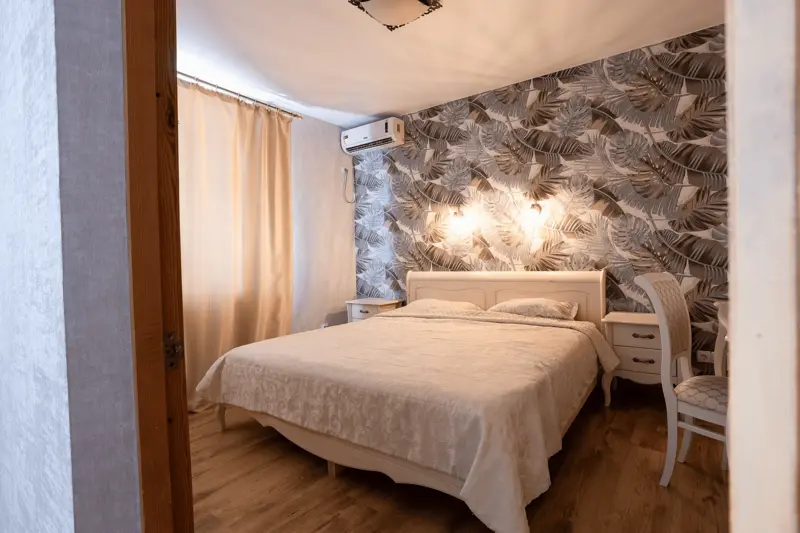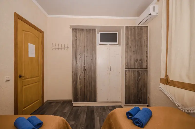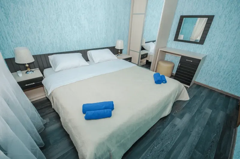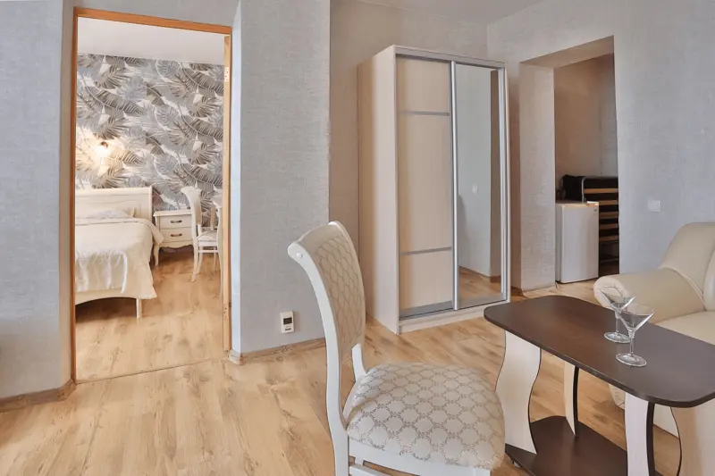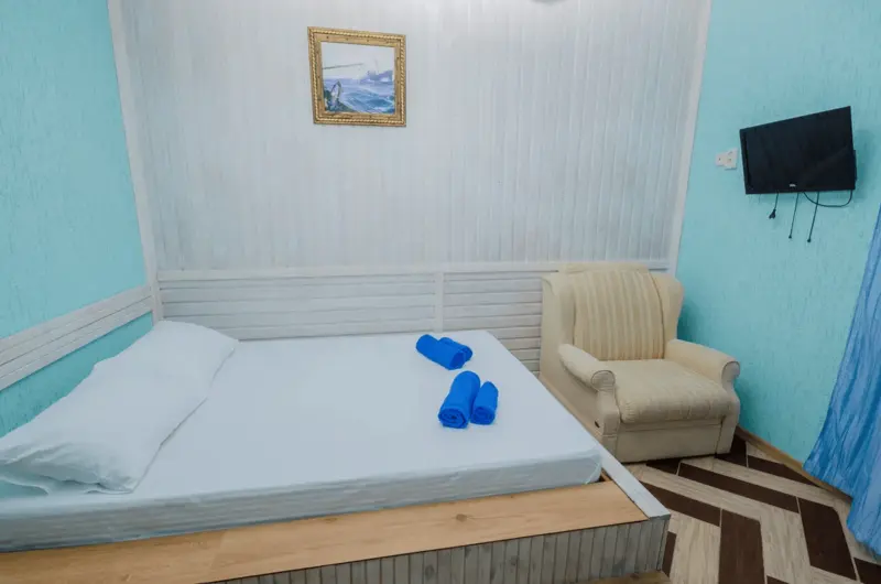 Все комнаты имеют свежий ремонт, хорошую мебель, удобства в номере, кондиционер и мини бар.На всей территории отеля и в номерах есть бесплатный WI-FI, парковка под видео наблюдением, бассейн с морской водой, русская баня на дровах с купелью и караоке, вкусная еда. Можно заказать любой вид массажа, спа-процедуры и косметические процедуры.