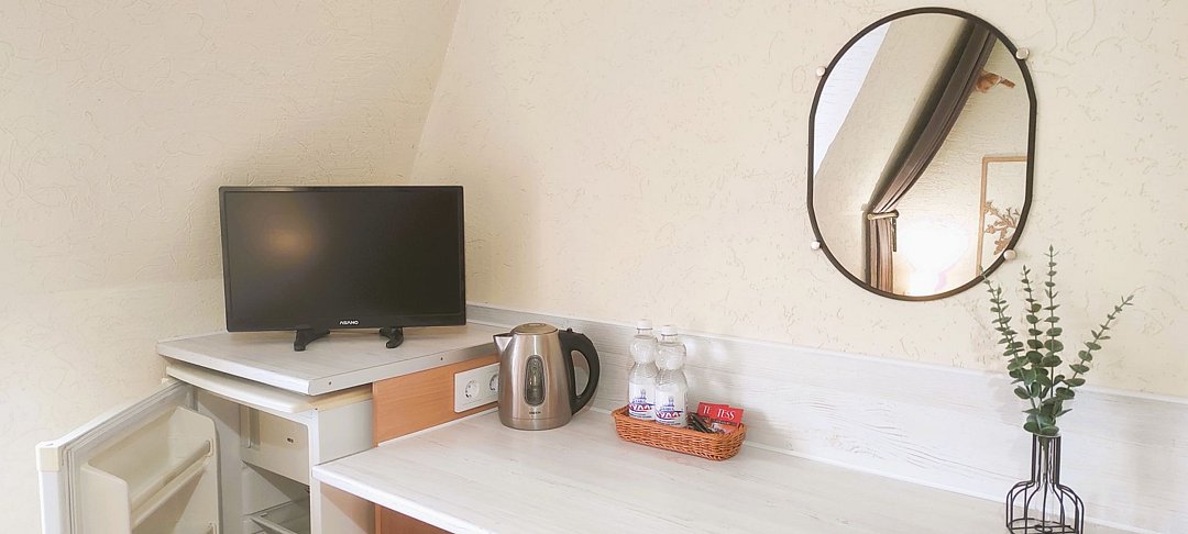 Здравствуйте, Владимир. Спасибо, что нашли время оставить отзыв о нас. Вами был забронирован номер Стандарт с французским окном. 1) Мы очень много времени уделяем тому, чтобы описание наших комнат было лаконичным. понятным и не вызывало двояких толкований. Кондиционер в данном номере не предусмотрен и об этом четко указано в описании номера на сайте. Вот оно: "Комнаты расположены на 2 этаже. Изюминкой этих комнат являются большие французские окна, которые подарят вам чувство простора и света. Из окон открывается вид на внутренний двор гостевого дома, детскую площадку и бассейн. Благодаря расположению на северной стороне здания комната меньше нагревается. В комнатах установлены вентиляторы. Комнаты подойдут для гостей, путешествующих по работе. Возможно предоставление раздельных кроватей, завтрака, ланч-боксов по договоренности. Wi-Fi во всех комнатах и на территории позволяет совмещать отдых с работой или фрилансом." Кроме того, за несколько дней до вашего приезда мы созванивались с вами или вашим коллегой и еще раз проговорили условия вашего бронирования. О наличии вентилятора вместо кондиционера вы были предупреждены. 2) Телевизор в комнате работает через приставку Т2, что не является технологией прошлого века и позволяет гостям получать сигнал ТВ в условиях, когда по различным обстоятельствам возможны помехи на других источниках. Мы всегда рады помочь гостям с настройкой и подключением, если вдруг сделать это самостоятельно не удается. 3) Подушки в номерах имеют наполнитель из холлофайбера, который является гипоаллергенным материалом и выглядит как шарики. 4) Воду из-под крана согласно рекомендациям Роспотребнадзора, к сожалению, не рекомендуется употреблять для питья практически везде, а не только в нашем гостевом доме. Водоснабжение гостевого дома осуществляется из собственной скважины, что позволяет гостям не зависеть от аварийных и других отключений воды, которые часто бывают в городах. Соленость воды обусловлена близостью к морю и это именно то, что позволяет нам сказать, что наша вода полезна для кожи и волос ). Мы всегда рады нашим гостям и стараемся по мере своих сил и возможностей обеспечить достойный уровень размещения. Приносим свои извинения, если вам было некомфортно у нас. С уважением, гостевой дом АтлантикА, Заозерное, Крым