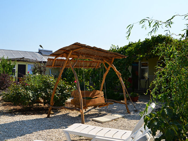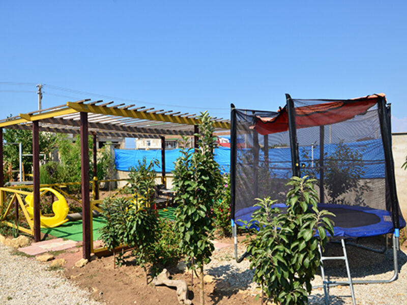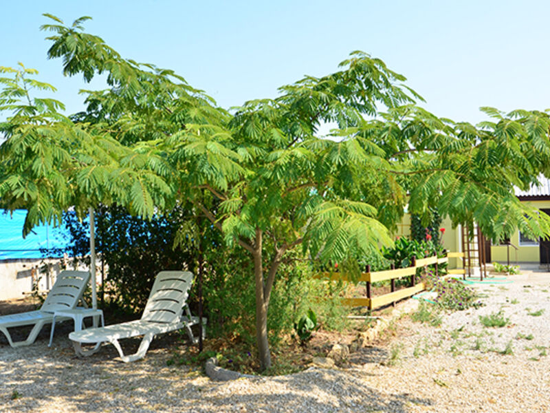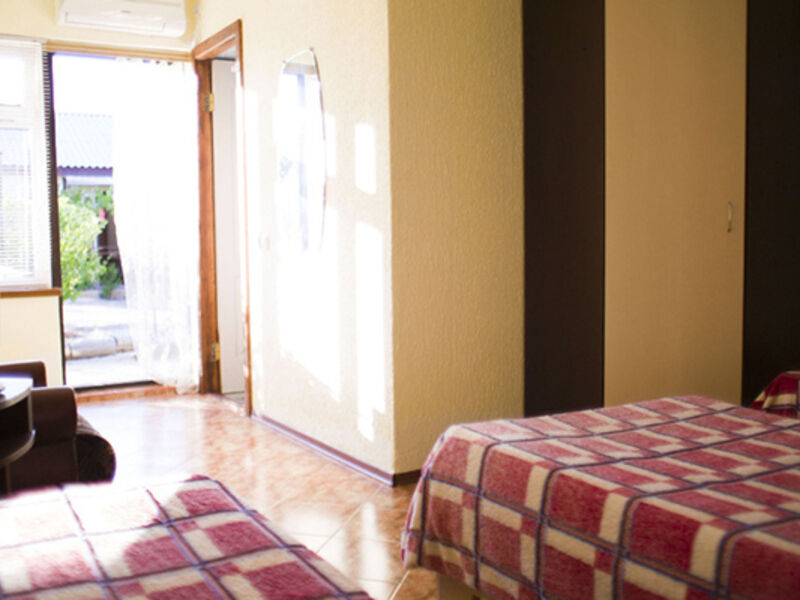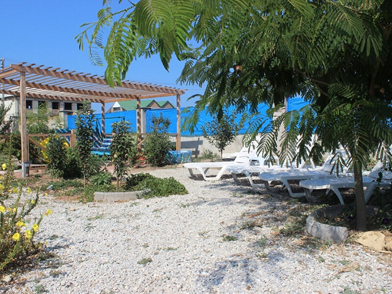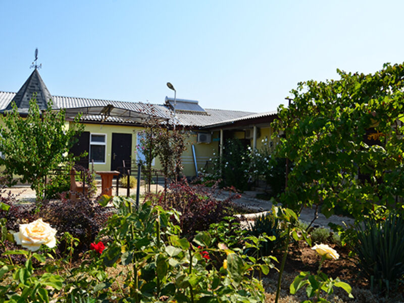 Песчаный пляж, оснащённый зонтиками, шезлонгами, террасой для отдыха, находится в 500 м от гостевого дома. В одном квартале от гостиницы есть крупный супермаркет. Добраться до отеля можно на общественном транспорте от Евпатории, либо воспользоваться услугами трансфера.