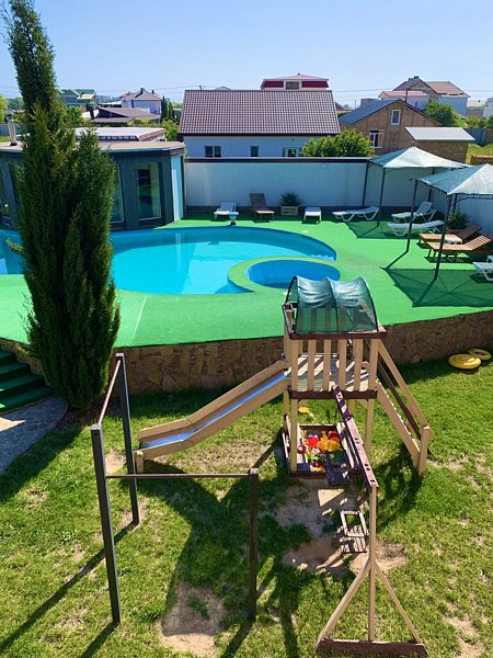 Читать полностьюГостевой дом «Дельмар» предусмотрел детский бассейн, который совмещен с основным бассейном. Детский бассейн специально создан для безопасного купания малышей разных возрастов. Глубина в детской чаше невелика, что позволяет детям чувствовать себя комфортно и безопасно. Родители могут спокойно наслаждаться отдыхом, зная, что их дети находятся под присмотром и купаются в безопасной среде.