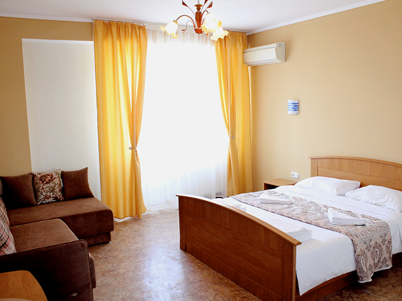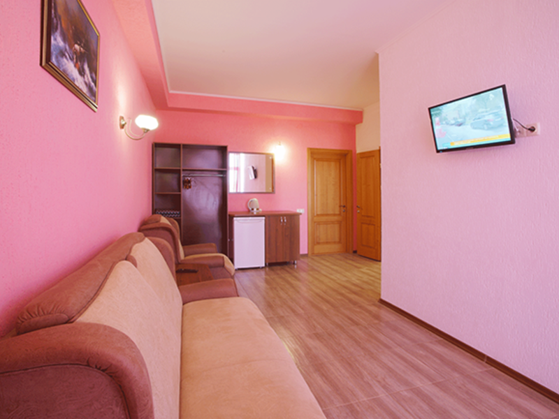 Пребывание в гостевом доме продумано до мелочей, можно ни о чем не беспокоится! В номере есть всё необходимое для комфортного отдыха: посуда, холодильник, фен, телевизор, светильники для вечернего чтения, душ всегда с горячей водой, коврики для пляжа и др. В столовой питание очень обильное, по-домашнему вкусное и разнообразное, нравится детям. Так, что можно получать полное удовольствие от отдыха!