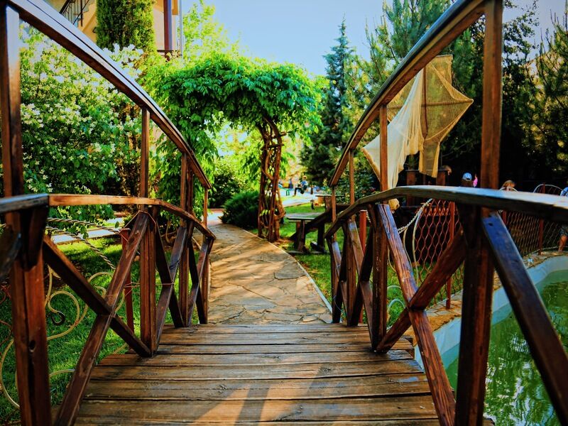 Вся территория пансионата – сплошной зеленый рай, особо расцвечен розами с невероятным ароматом и цветовой гаммой!