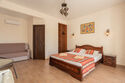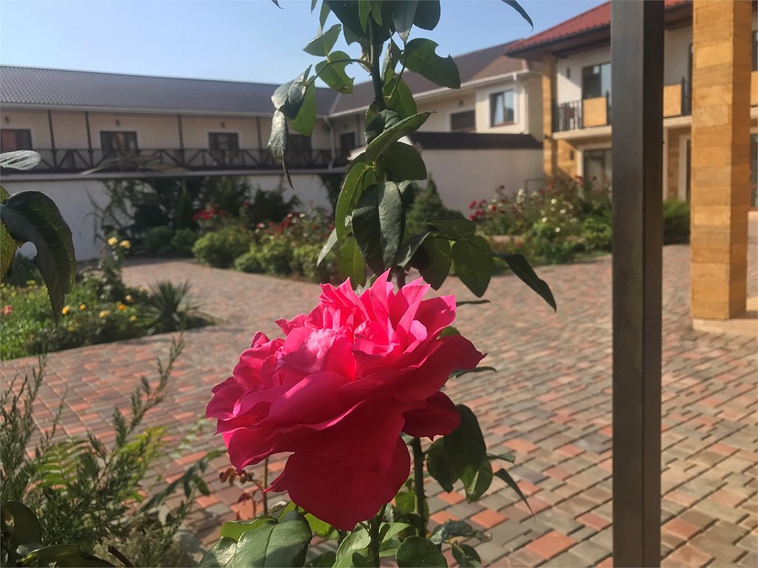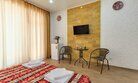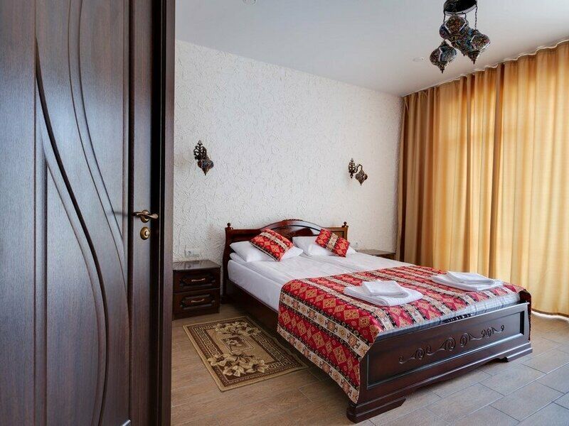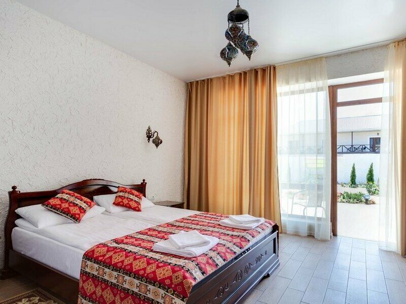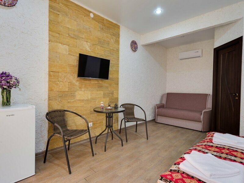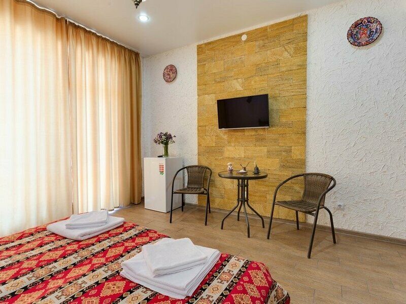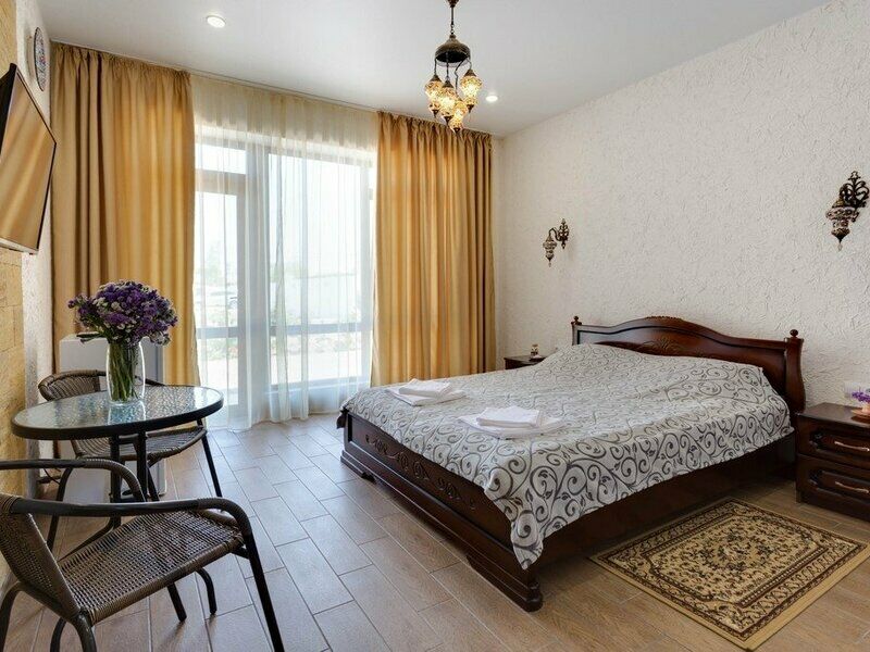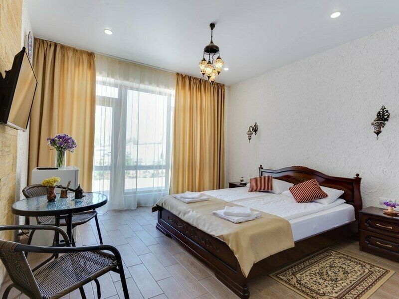 Жилой фонд гостевого дома представлен зданием в два этажа, занимающий небольшую, но при этом закрытую территорию. До побережья Черного моря всего 600 метров. Для заселения гостям предлагаются номера таких категорий как 1-комнатные Стандарт и 2-уровневые Студио. В каждом из номеров предусмотрено наличие санузла, душевой, а также кондиционера и требующейся бытовой техники и мебели.