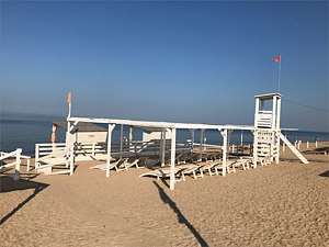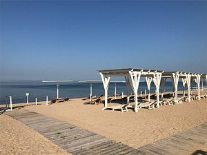 Пляж располагается в нескольких минутах ходьбы от отеля и имеет все необходимое для полноценного отдыха.