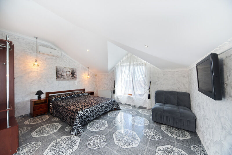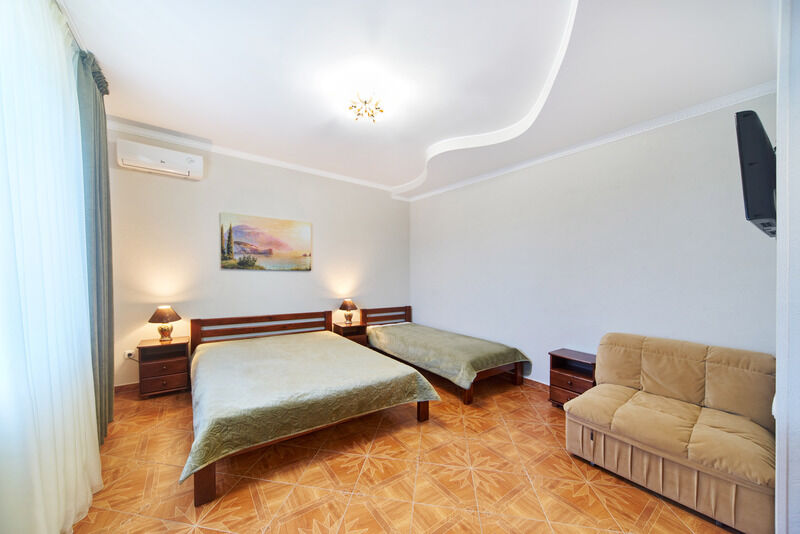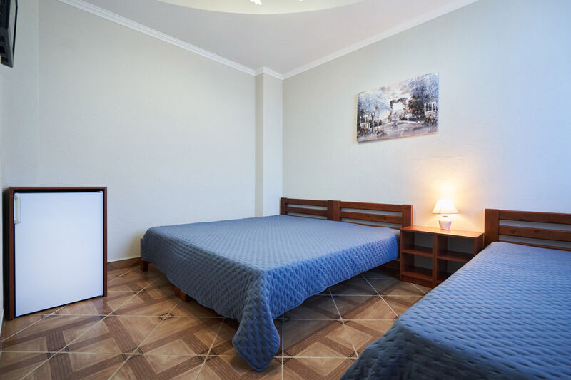 Номера с интересным дизайном оснащены кроватями с ортопедическими матрасами, платяными шкафами, тумбочками. В комнатах есть всё для полноценного отдыха: тонированные стеклопакеты с шумоизоляцией, москитные сетки, кондиционер, холодильник, плазменный TV, бесплатные спутниковые телеканалы и Wi-Fi, фен, набор постельного белья и полотенец (кроме пляжного), ванная комната (душ, туалет, умывальник), горячая и холодная вода круглосуточно.