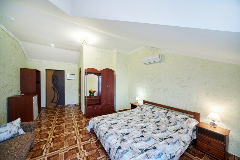 Территория чистая, уютная, утопает в розах до второго этажа, таких я еще не видела. Номера очень хорошие сделаны со вкусом. Питание вкусно, по-домашнему. Цены приятные. До моря идти минут 10 по алее. Море чистое, пляж отличный. Во дворе огромный бассейн с гидромассажем и подогревом, что немаловажно если вдруг погода подвела. Резюмируя вышеизложенное, цена соответствует качеству. Буду советовать друзьям и приезжать еще не раз.
