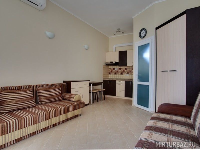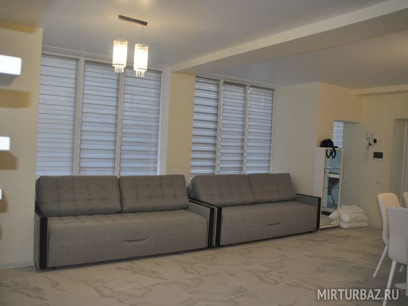 - 3 двуспальных раскладных дивана, 2 двуспальные кровати, кухонная мебель, обеденный стол + стулья, комод, шкаф-купе.