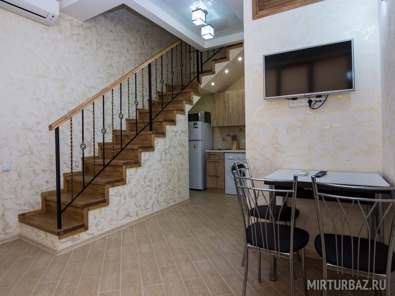 - 3 кондиционера, холодильник, 3 телевизора (2 на первом жтаже,1 на втором) стиральная машина (автомат), бойлер (горячая вода 24 часа), микроволновая печь, электрочайник, варочная поверхность, утюг, персональный сейф.