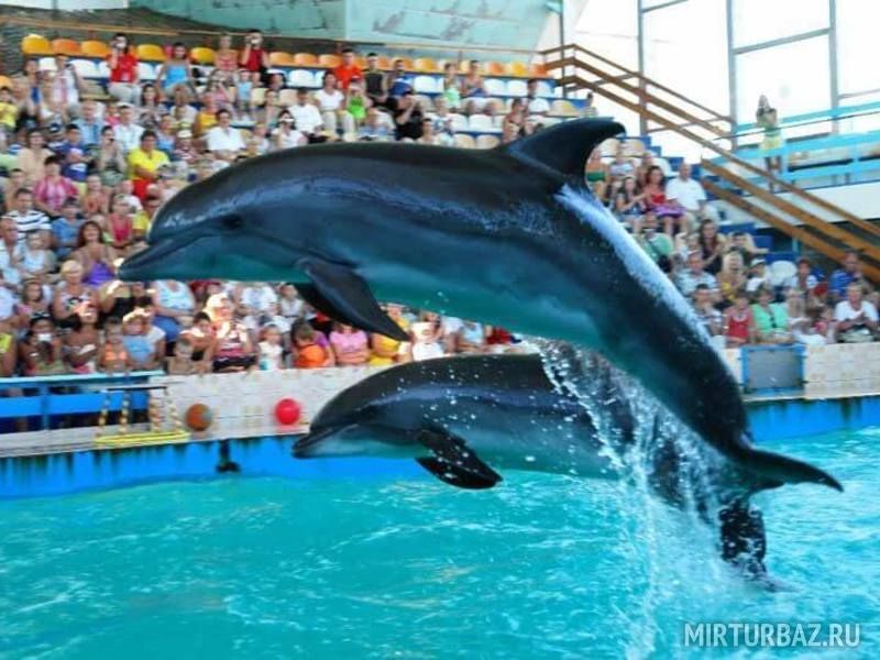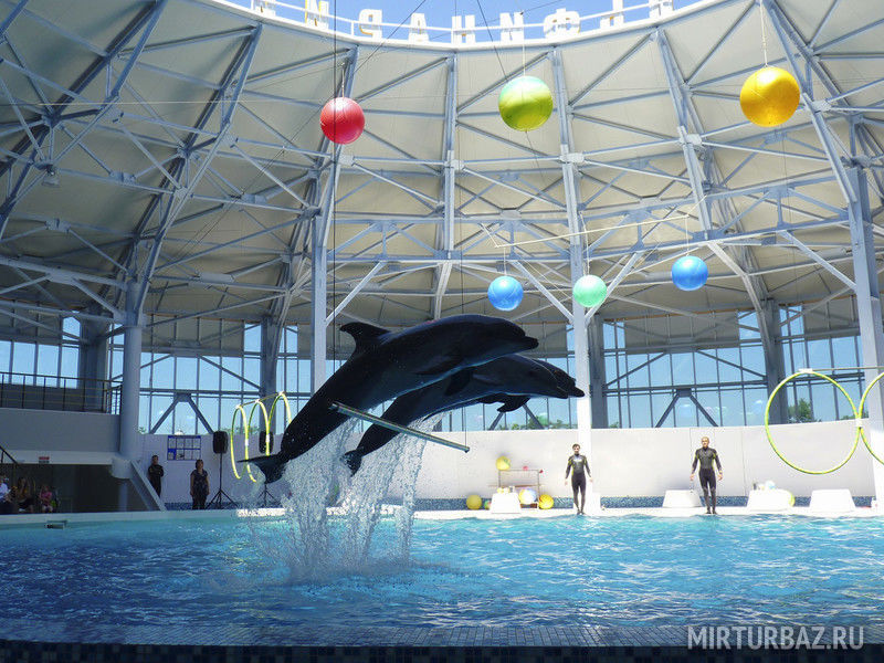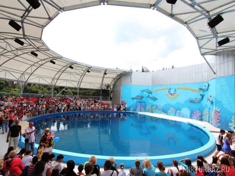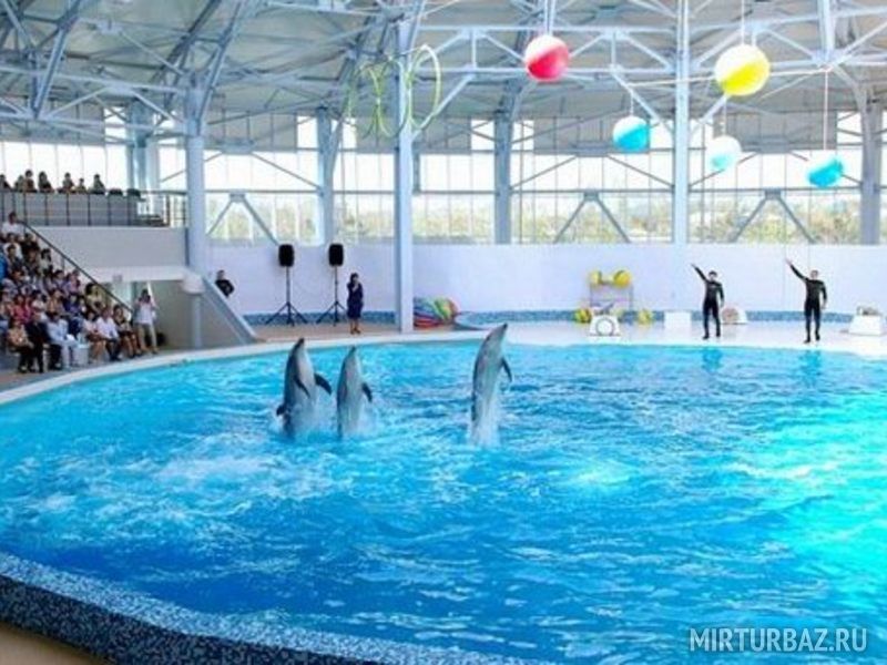 Светлый объемный зал Дельфинария может с комфортом разместить до 800 гостей.