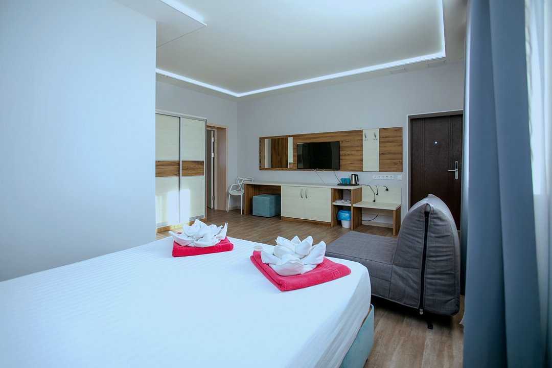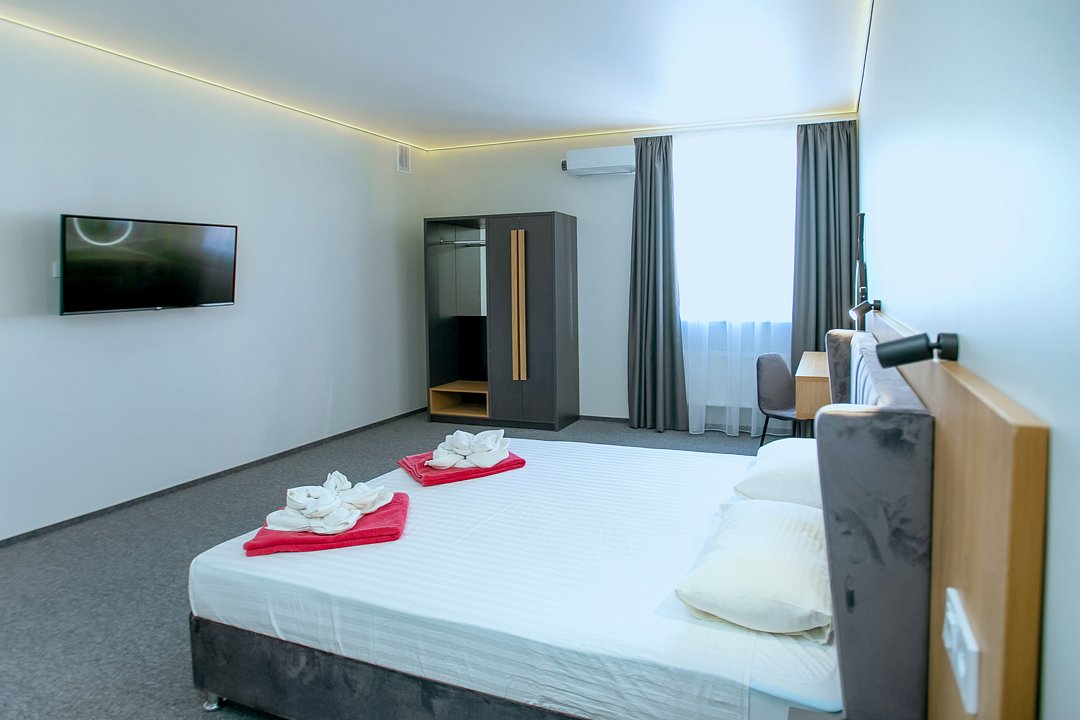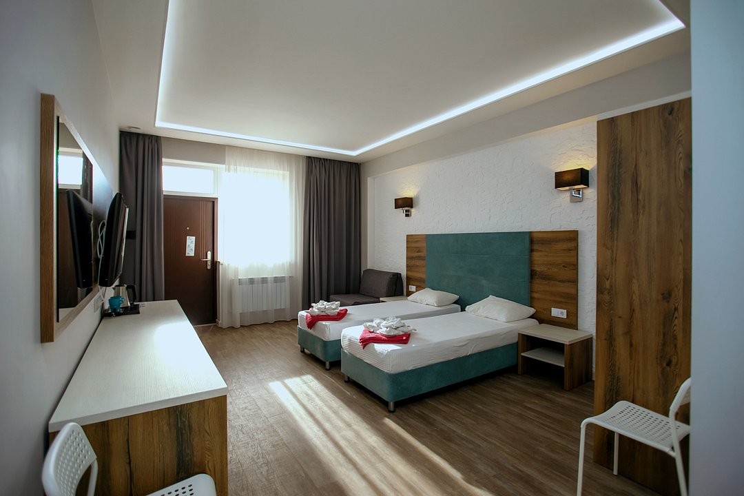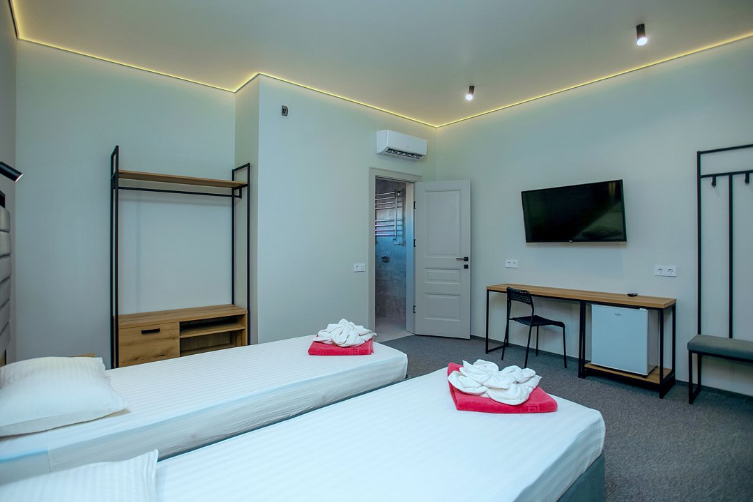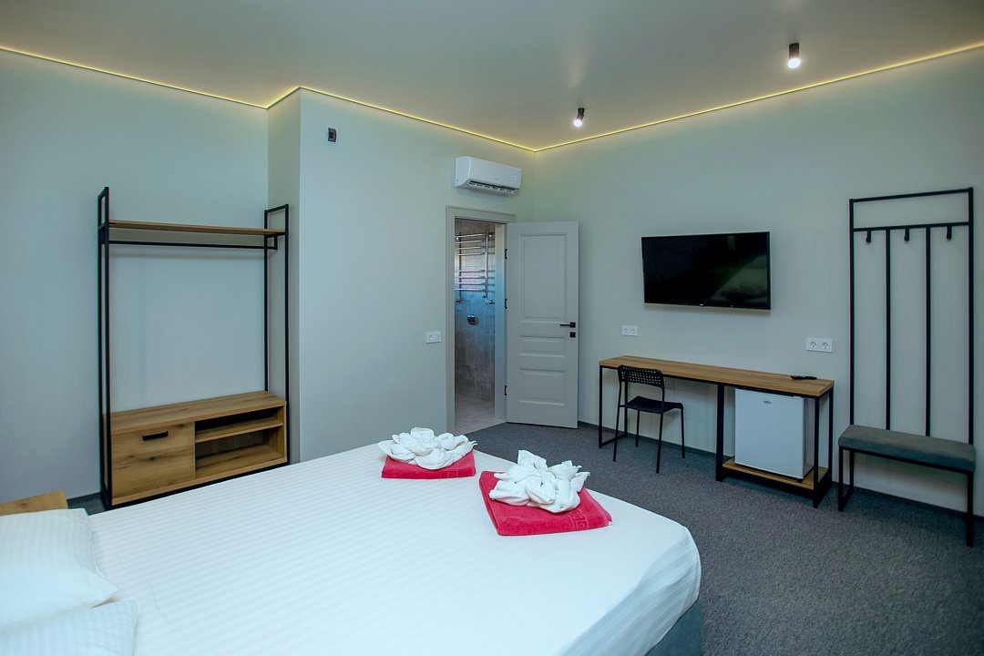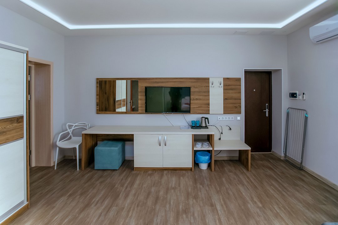 Для проживания гостей предлагаются номера разного уровня комфорта. В каждом номере есть всё необходимое для полноценного отдыха: холодильник и кондиционер, душ с холодной и горячей водой, санузел, Wi-Fi и телевизор, шкаф для одежды, сушилка для белья.