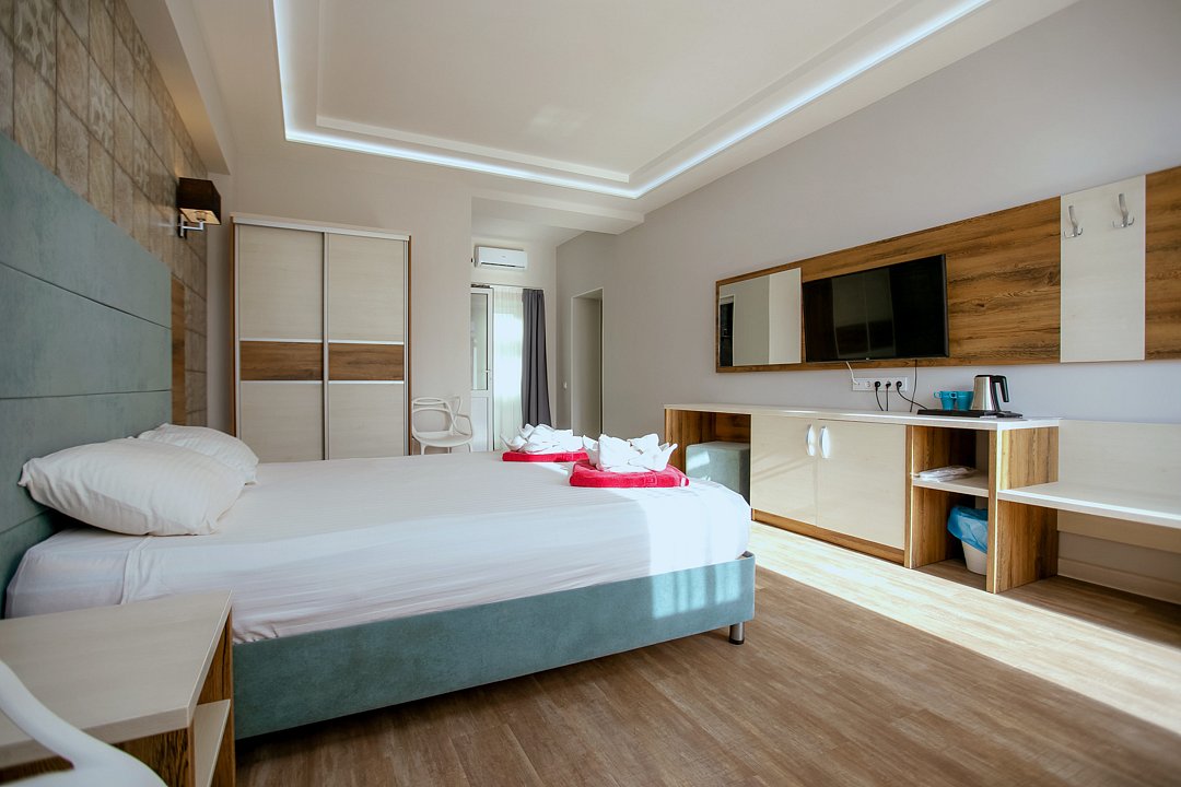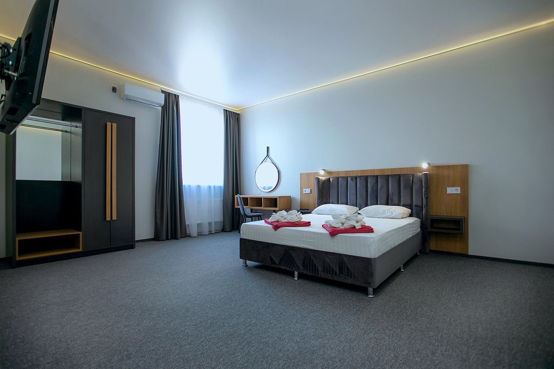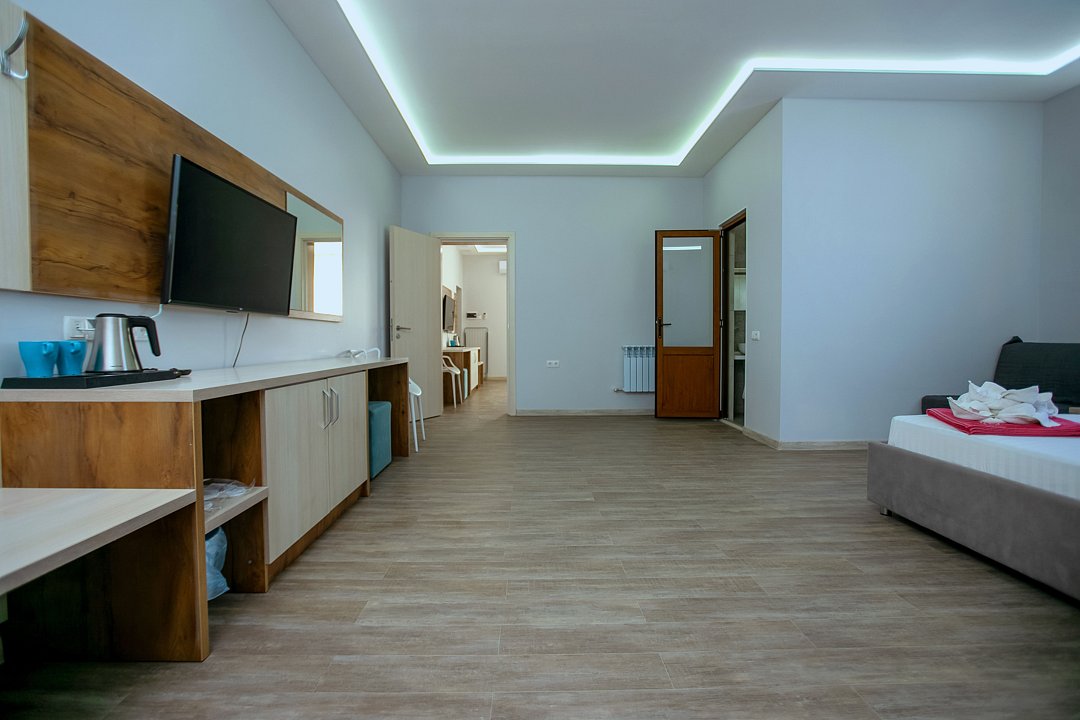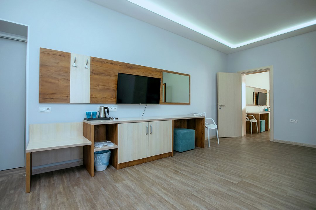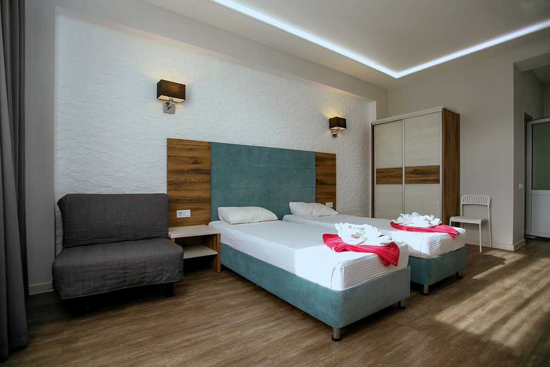Для проживания гостей предлагаются номера разного уровня комфорта. В каждом номере есть всё необходимое для полноценного отдыха: холодильник и кондиционер, душ с холодной и горячей водой, санузел, Wi-Fi и телевизор, шкаф для одежды, сушилка для белья.