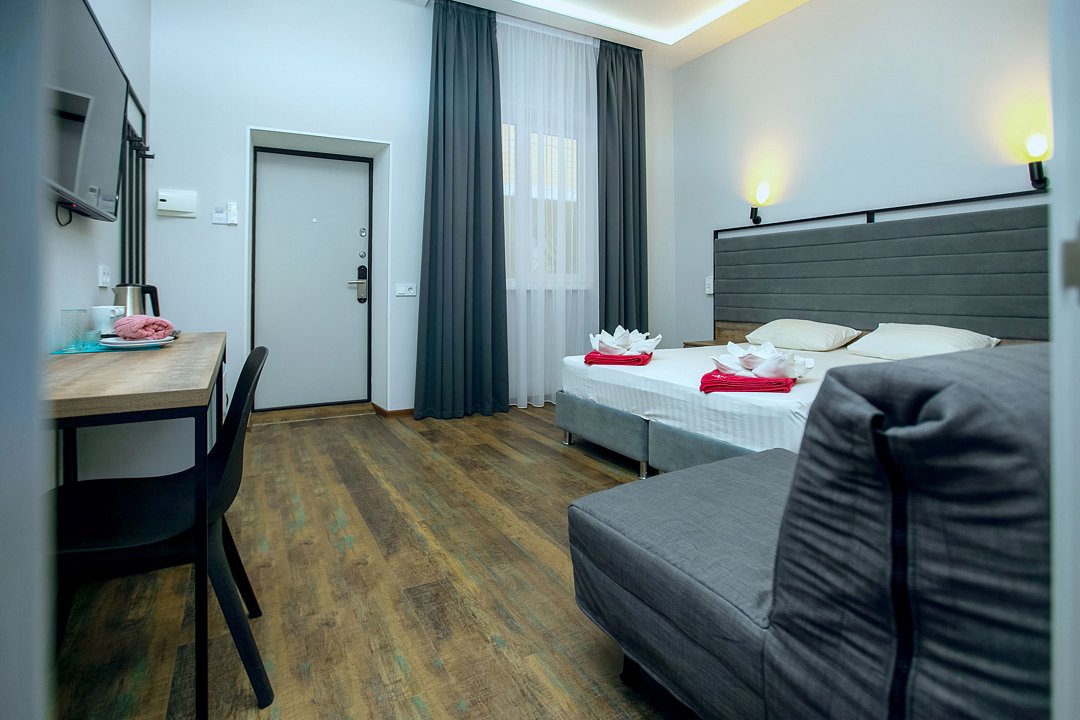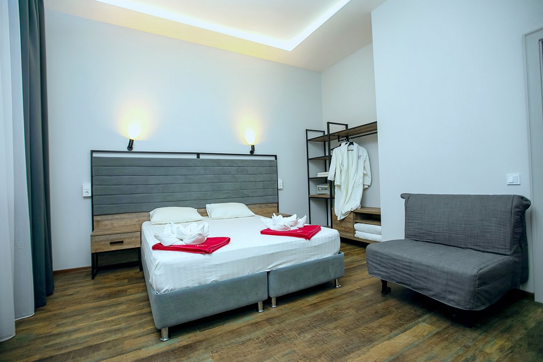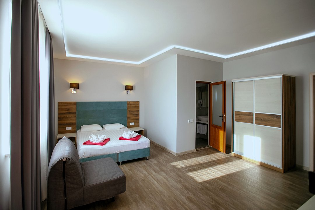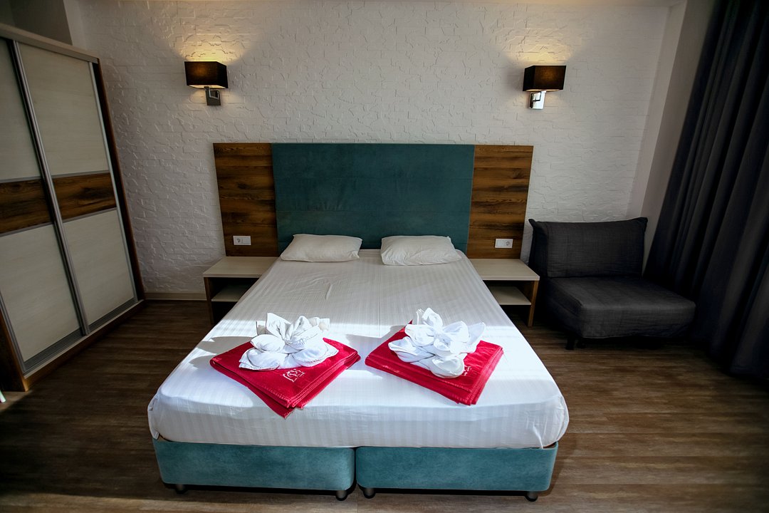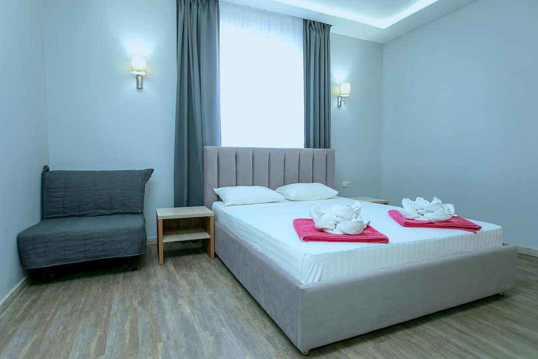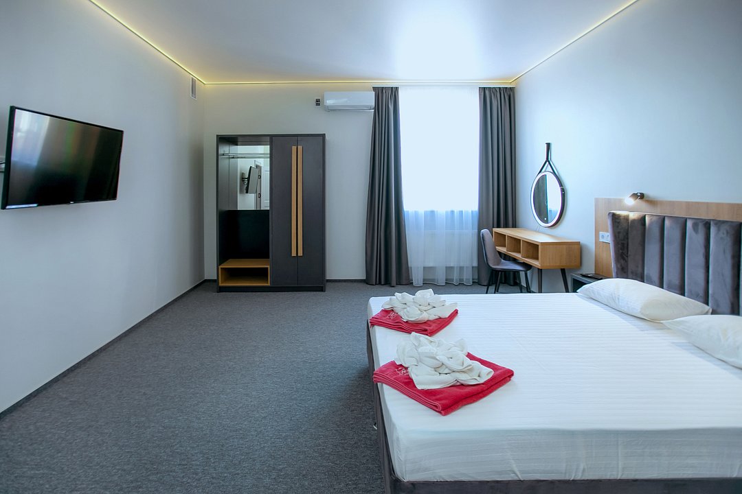 Для проживания гостей предлагаются номера разного уровня комфорта. В каждом номере есть всё необходимое для полноценного отдыха: холодильник и кондиционер, душ с холодной и горячей водой, санузел, Wi-Fi и телевизор, шкаф для одежды, сушилка для белья.