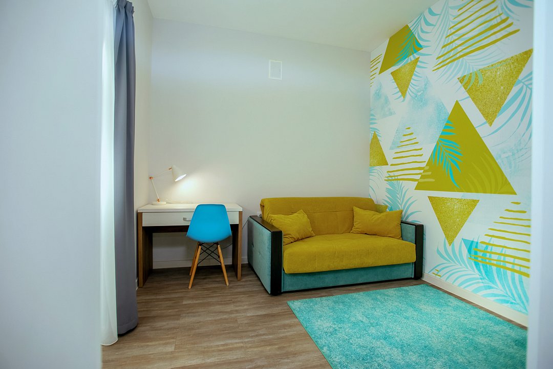 Раскладной диван. Письменный стол.