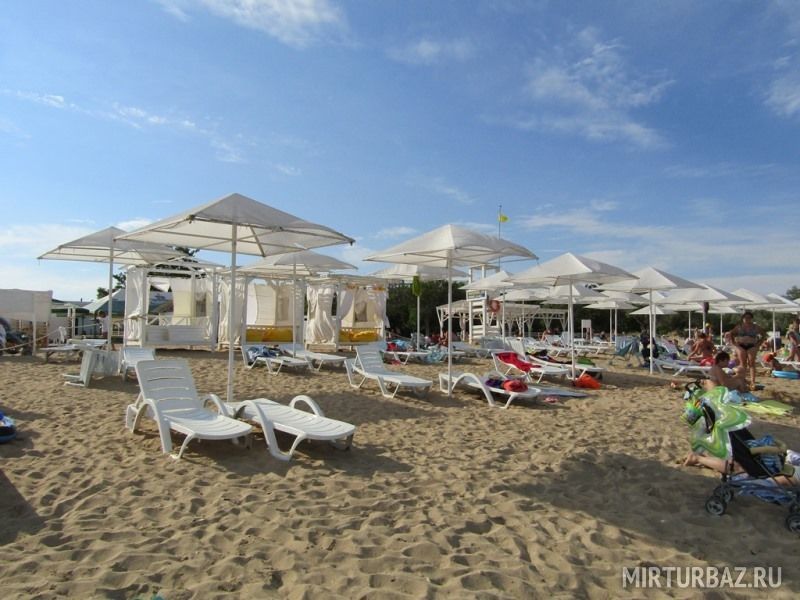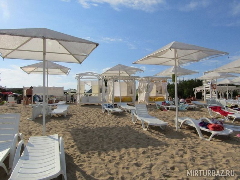 Инфраструктура: лежаки, зонтики, шезлонгиПесчаный пляж