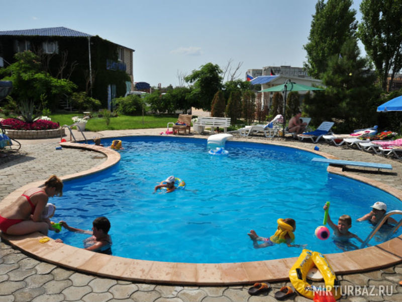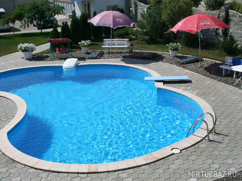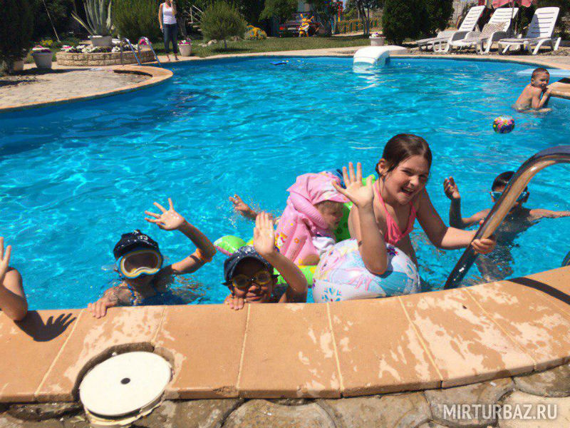 Удобный спуск в бассейн, прозрачная вода – родители могут не переживать за безопасность детей, наблюдая за ними, расположившись рядом на шезлонгах. Подсветка в темное время суток придает особое очарование и создает романтичную атмосферу.
