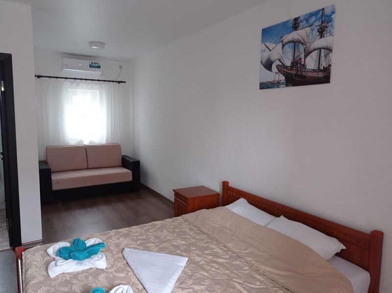 Здание гостевого дома находится всего в 400 метрах от моря. Отдыхающие могут разместиться в однокомнатных и двухкомнатных номерах категории Стандарт, каждый из которых рассчитан на размещение 2—4 человек. Во всех номерах имеется кондиционер, собственный санузел с душем и телевизор.