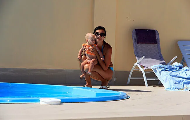 Тип бассейна: открытый бассейн, детский бассейнРядом с бассейном: шезлонги, зонтикиДля самых маленьких — бассейн с чашей диаметром 3,5 м.