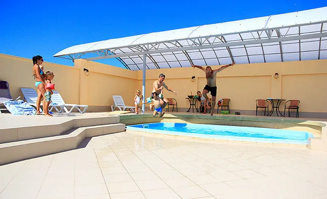 Тип бассейна: открытый бассейнРядом с бассейном: шезлонги, зонтикиРазмеры: 3 x 5 мПлощадь: 15 м²Стоимость