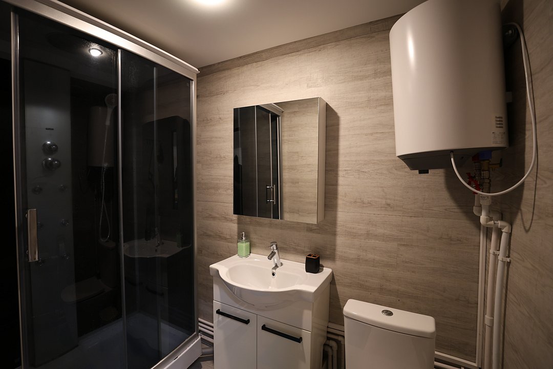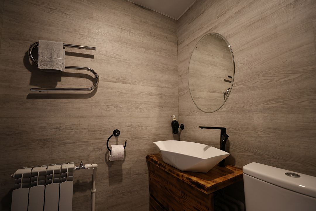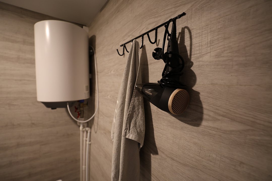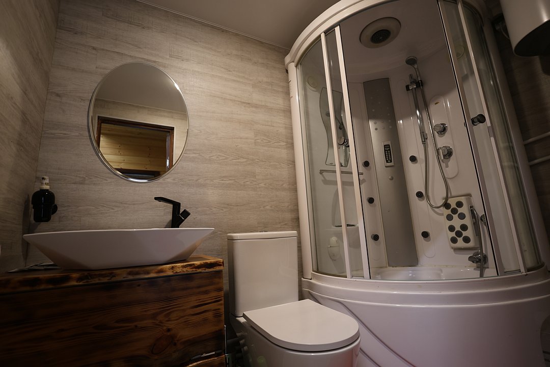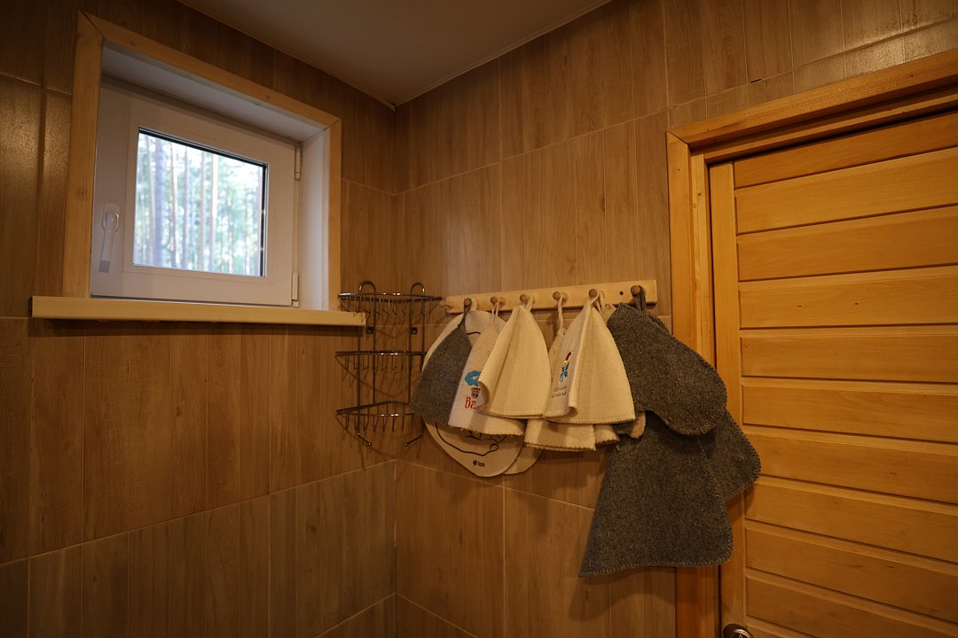 В доме есть всё необходимое для комфортного отдыха на природе. Санузел оборудован душем, феном и средствами личной гигиены, а также в наличии мягкие банные полотенца. Особенным элементом дома является баня с настоящей парной на дровах — здесь можно не только прогреться, но и почувствовать настоящий дух русской традиции.