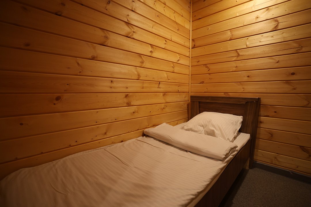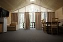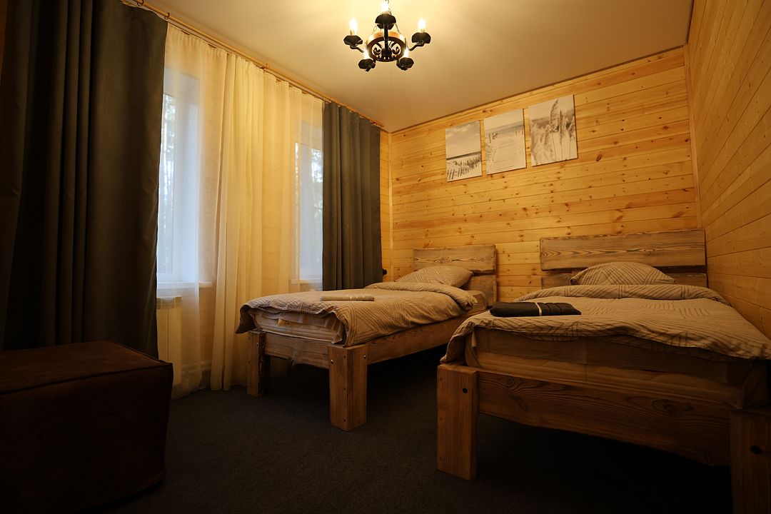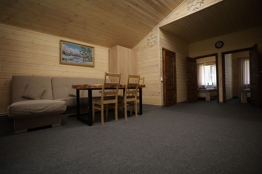 Просторный и продуманный до мелочей, дом №4 рассчитан на размещение до 10 человек на основных спальных местах с возможностью организации до 5 дополнительных. В доме четыре отдельные спальни: три из них оборудованы двуспальными кроватями, а в четвёртой — две односпальные. В большой гостиной расположены два удобных дивана и пять кресел-кроватей, которые при необходимости легко трансформируются в дополнительные спальные места.