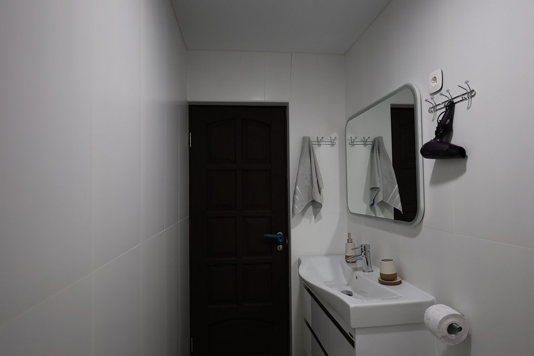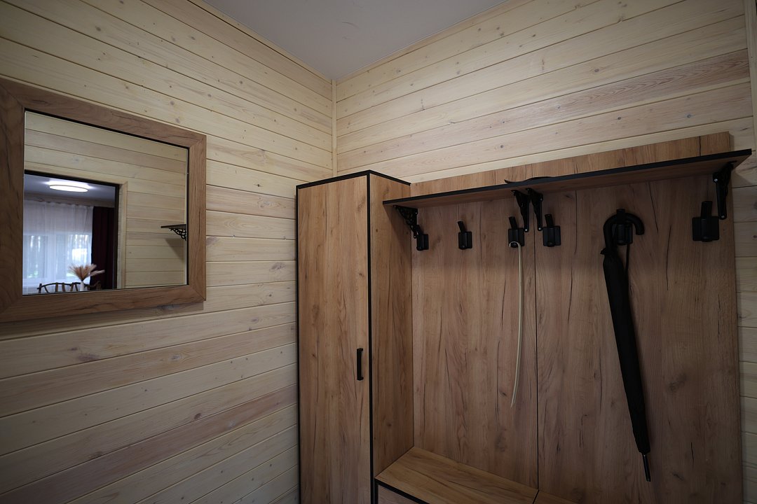 В доме есть всё необходимое для комфортного отдыха в любое время года. Вход начинается с прихожей, из которой удобно попасть в остальные помещения. Санузел с душевой комнатой оборудован тёплым полом, феном, средствами личной гигиены и мягкими банными полотенцами — всё для вашего уюта и заботы о себе.