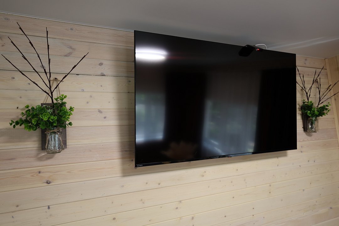 Для вашего удобства в доме установлен Smart-TV и работает Wi-Fi, чтобы вы всегда могли быть на связи, посмотреть любимые фильмы или включить музыку для настроения.