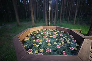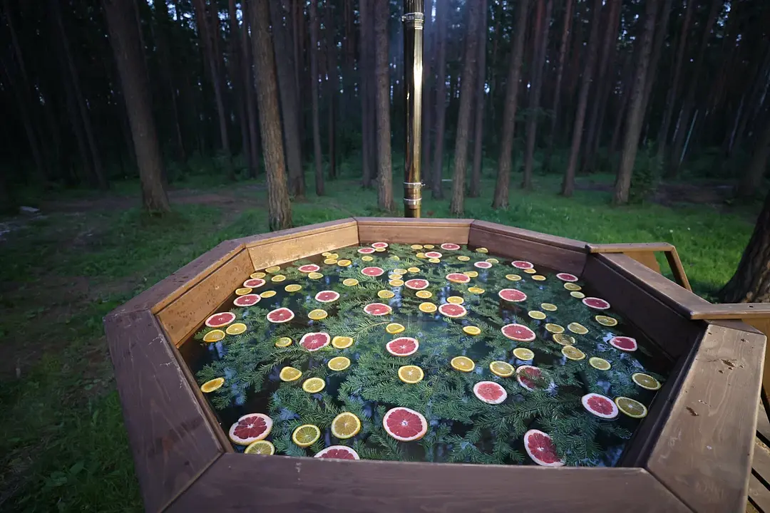 На территории базы есть возможность насладиться банным чаном. В нем можно окунуться после парной или посидеть в разогретой воде, настоянной на хвое или травах. Чан несет не только глубокий оздоровительный и омолаживающий эффект, но и позволяет прекрасно отдохнуть в атмосфере свежести окружающей природы и хвойного леса. Он особенно полюбится гостям в зимний период времени, ведь горячая вода и морозный воздух залог невероятного расслабления.