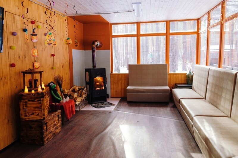 Теплая круглогодичная беседка для душевных встреч с друзьями, для семейных посиделок, для теплых камерных вечеров, для небольших мероприятий (15-20 человек). Можно использовать в любое время года – летом в ней не жарко, а для холодного времени года имеется замечательный камин на дровах.