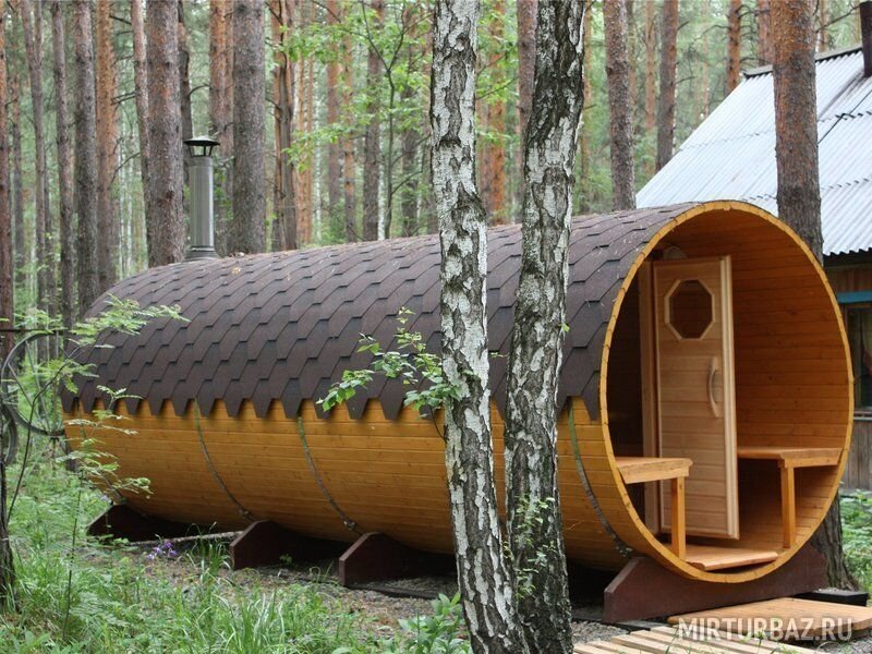 В бане: парилка, помывочное отделение, комната отдыха.