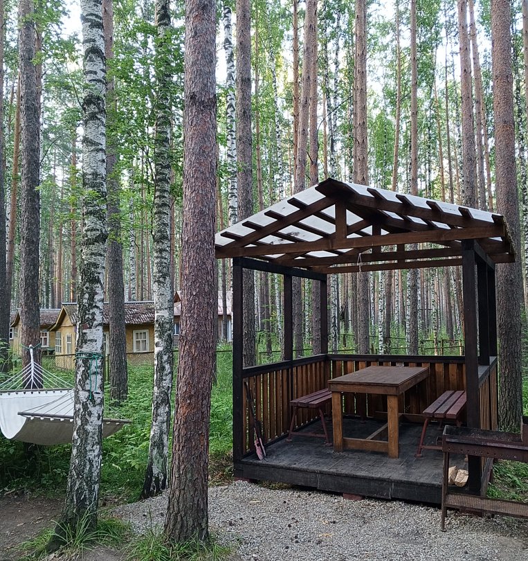 Место для отдыха на открытом воздухе (стол, скамейки, мангал) — 150 ₽\час + въезд на базу для не проживающих — 100 ₽/человек.